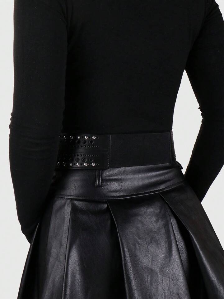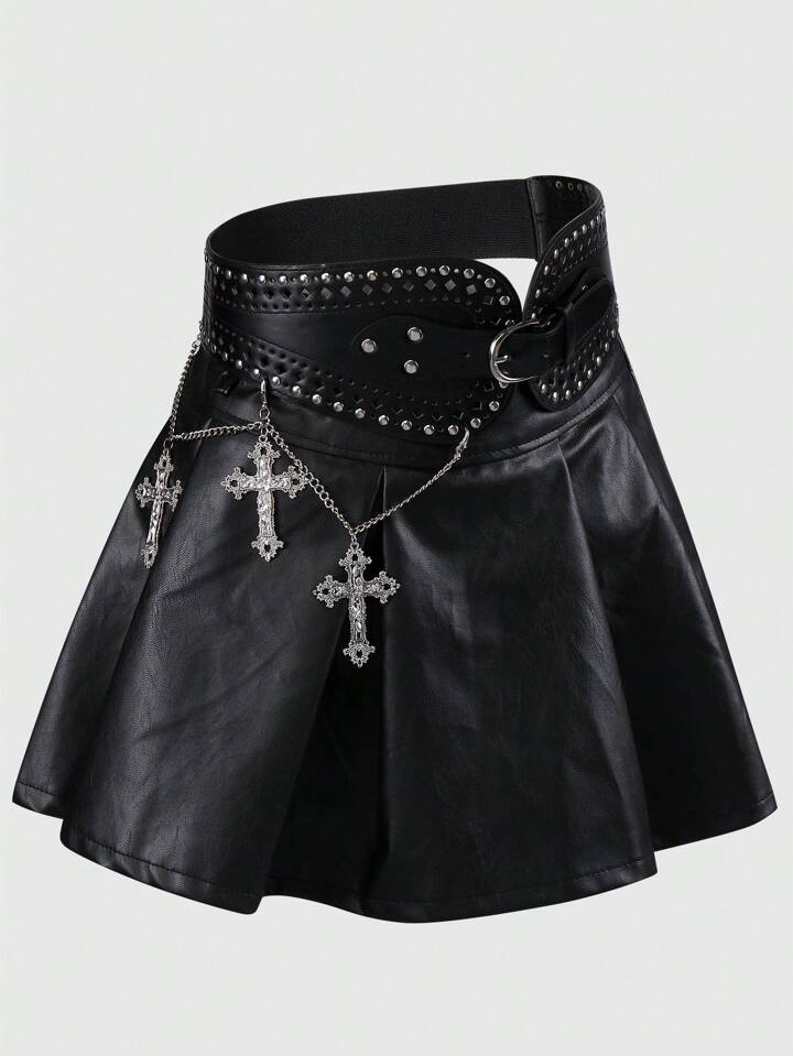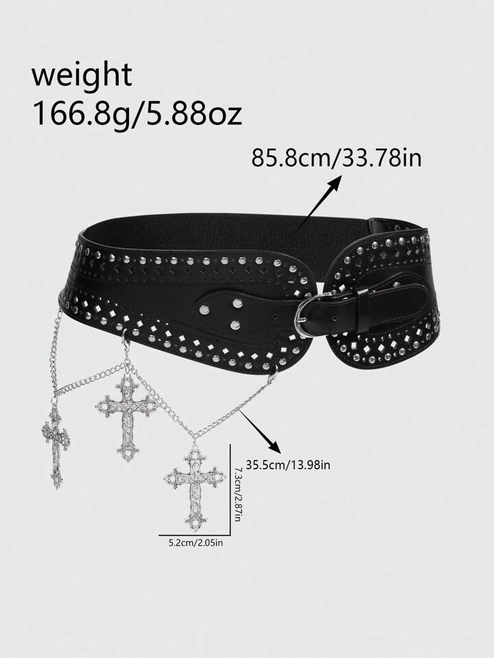 1pc Y2K Vintage Punk Goth Rivet Leather Belt With Hollow Cross Pattern, Suitable For Women, Girls Daily Wear And Gifts