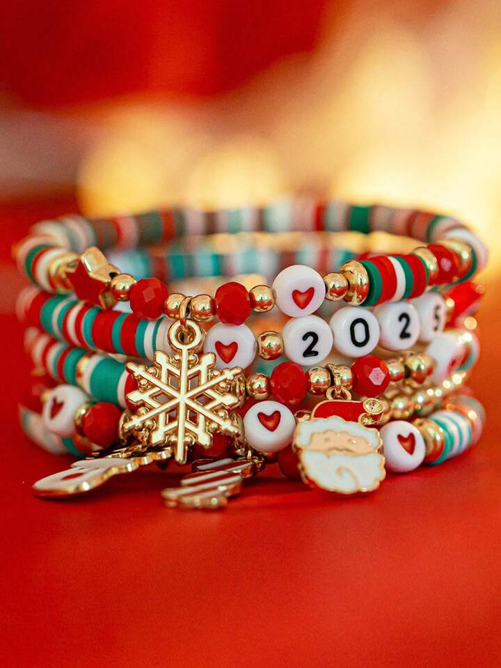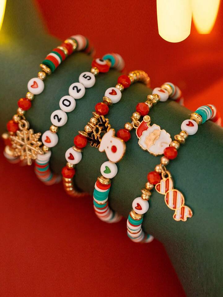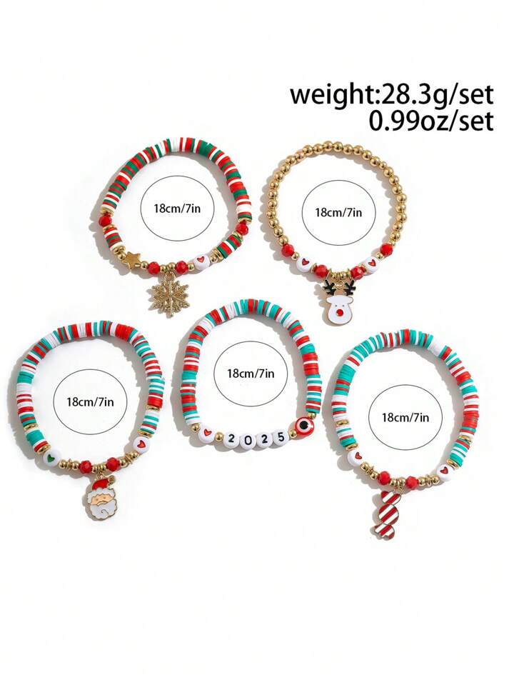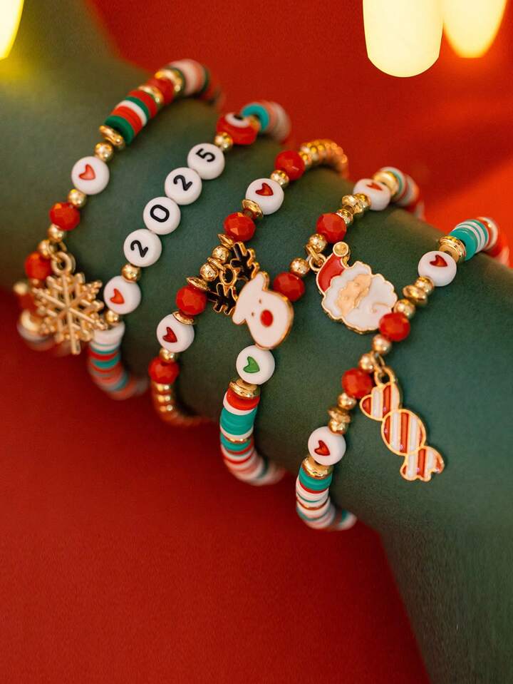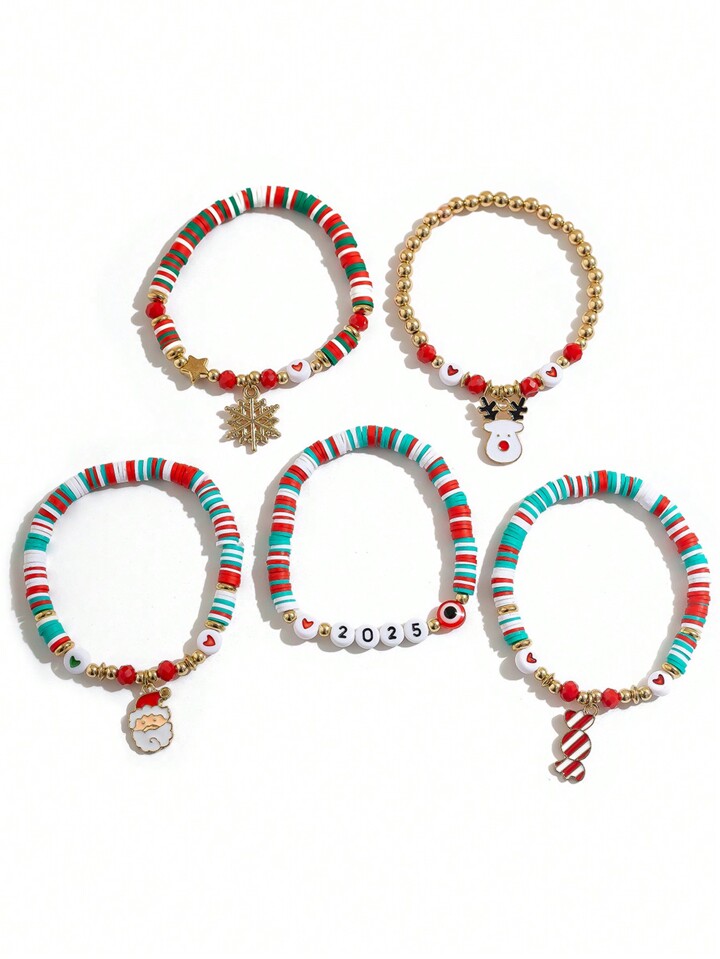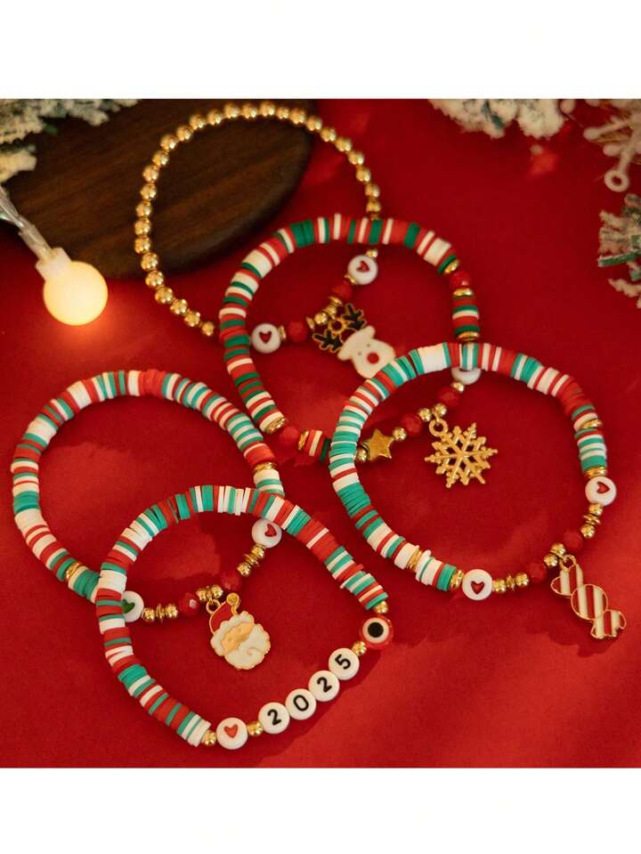 1set Women's Christmas Soft Clay Beaded Bracelet Set