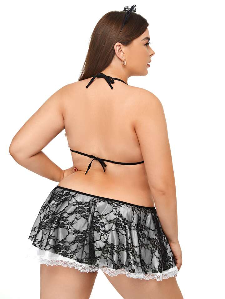 2 Packs Plus Size Lace Overlay Maid Costume Set
