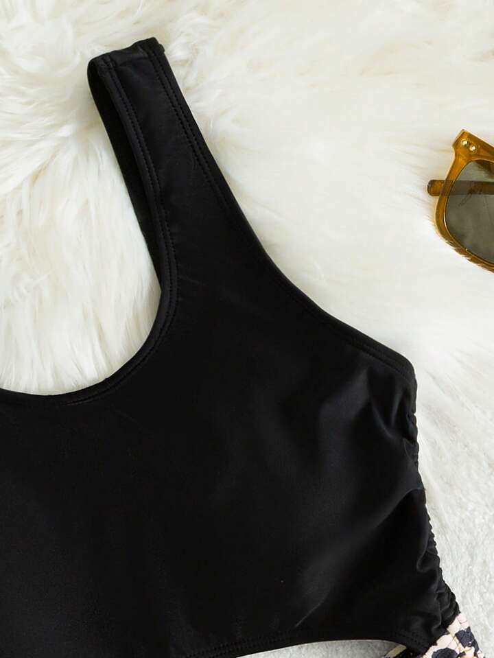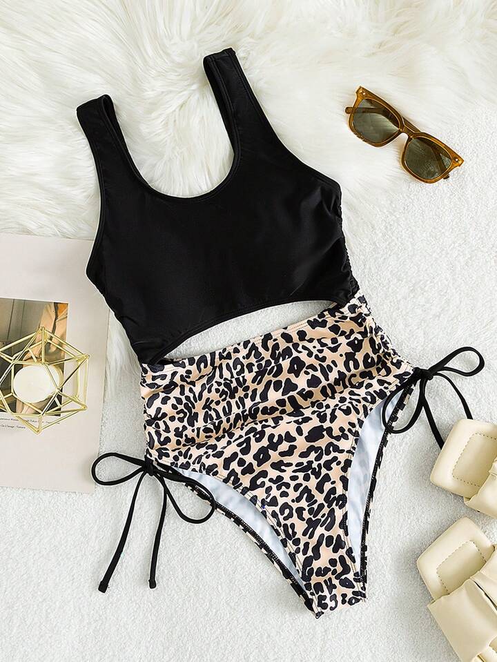 2025 Leopard Print Patchwork Hollow One-Piece Swimsuit, Random Print