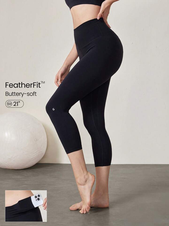 21" FeatherFit™ Capris Yoga Leggings Buttery Soft Non See-Through Tummy Control Gym Tights With Hidden Pocket At Waist Fall Winter