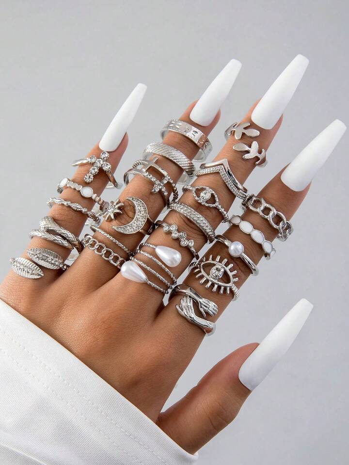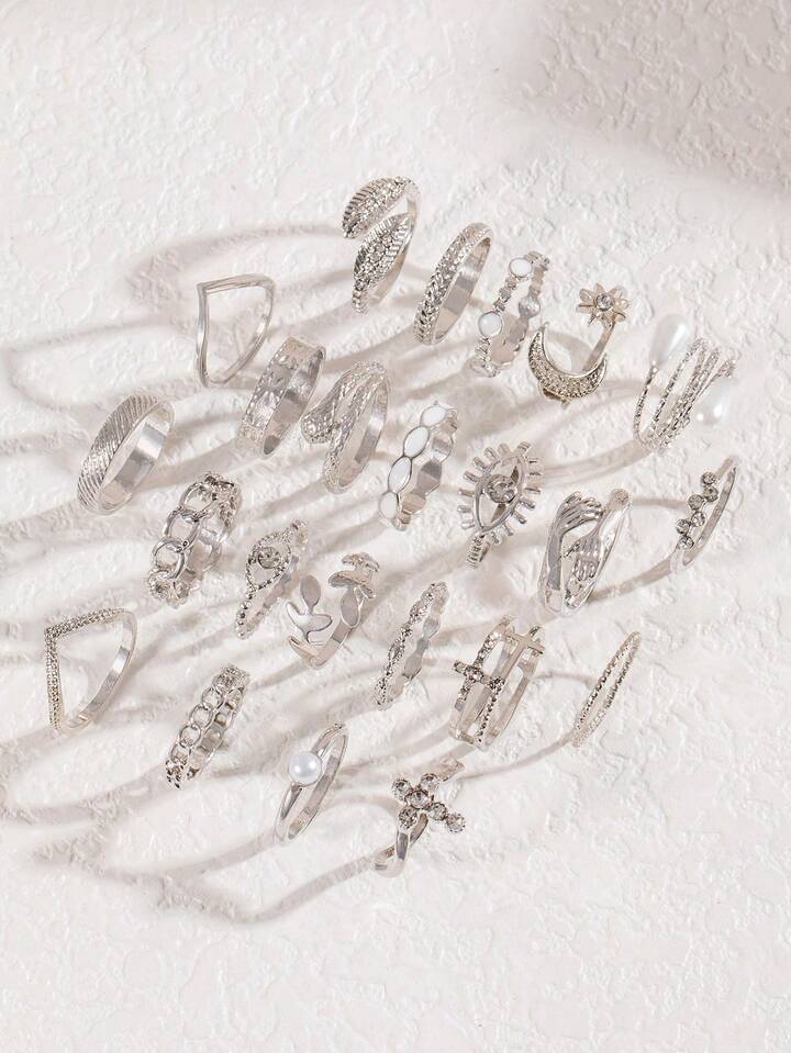 23pcs/Set Minimalist Fashionable Alloy Double-Headed Snake & Leaf Open Ring Set For Women, Gift For Date