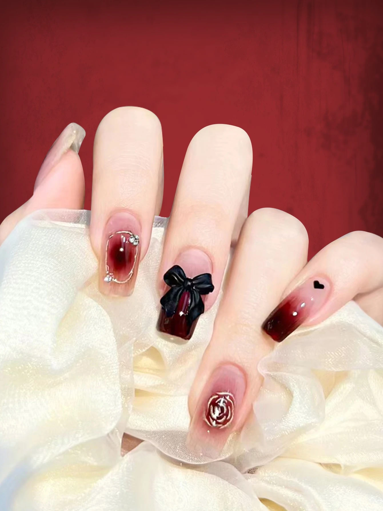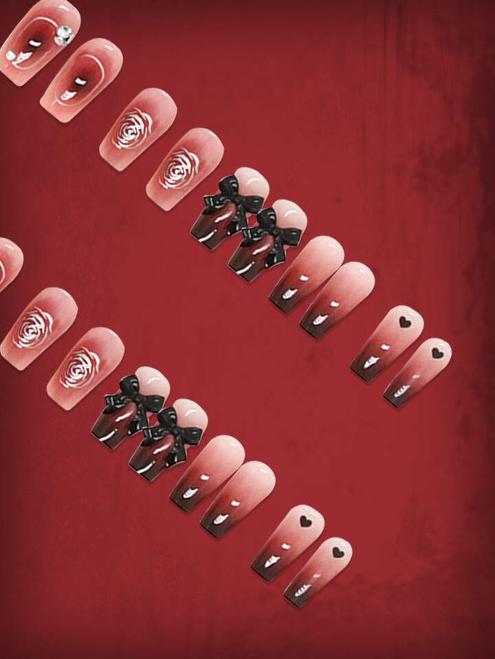 24pcs Coffin 3D Bow Decor Fake Nail & 1sheet Tape