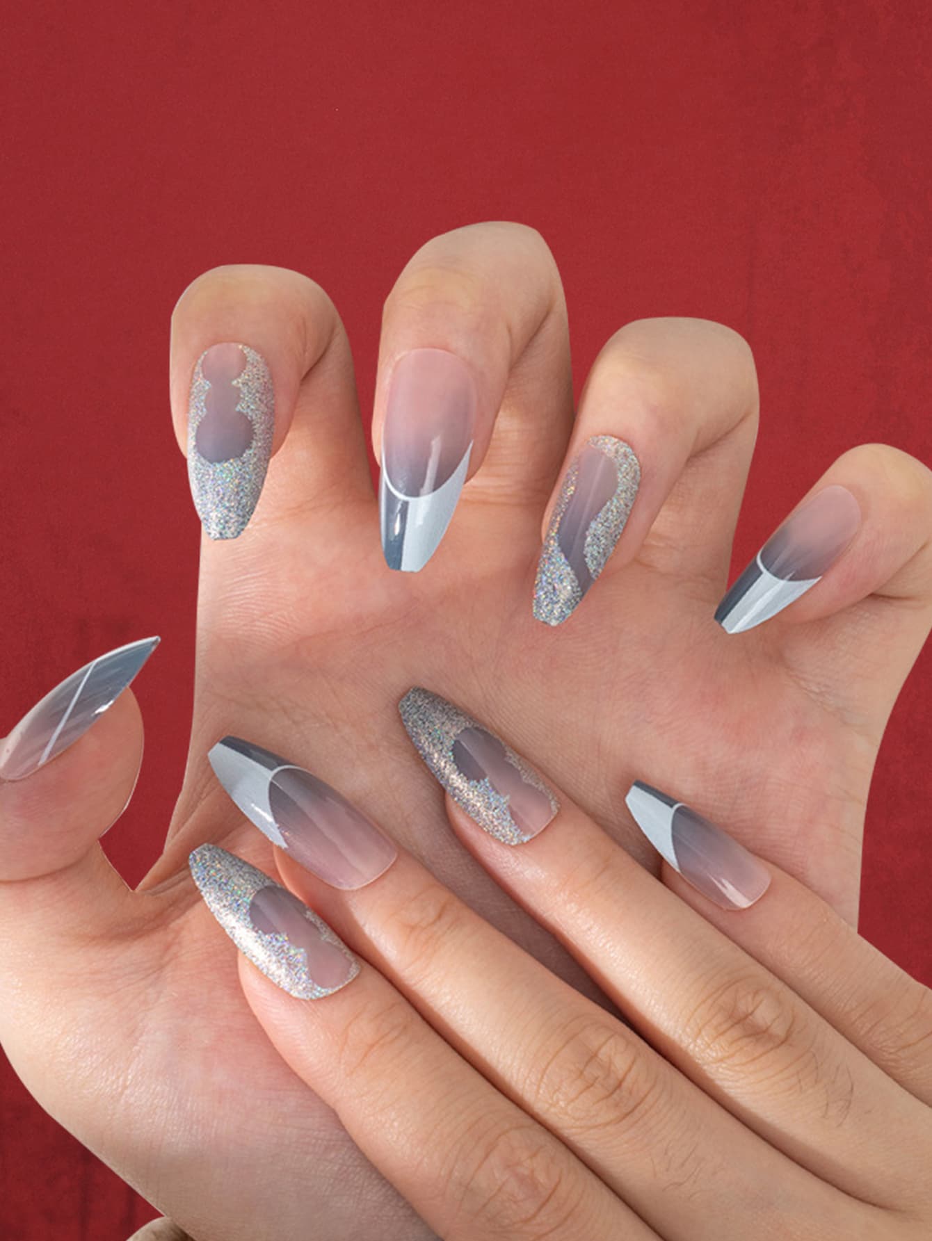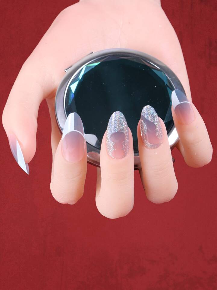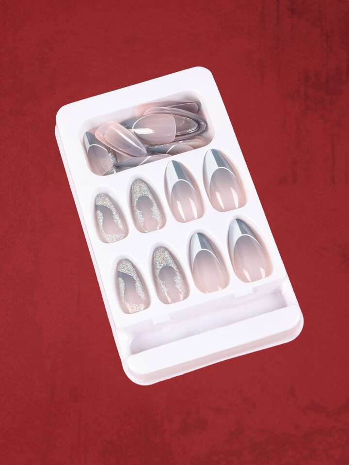 24pcs Coffin Glitter Fake Nail & 1sheet Nail Tape