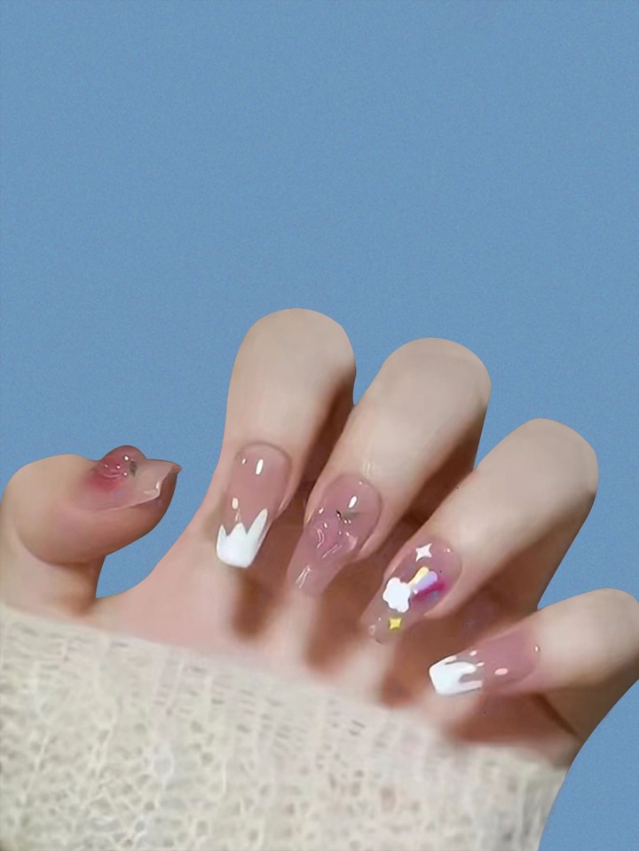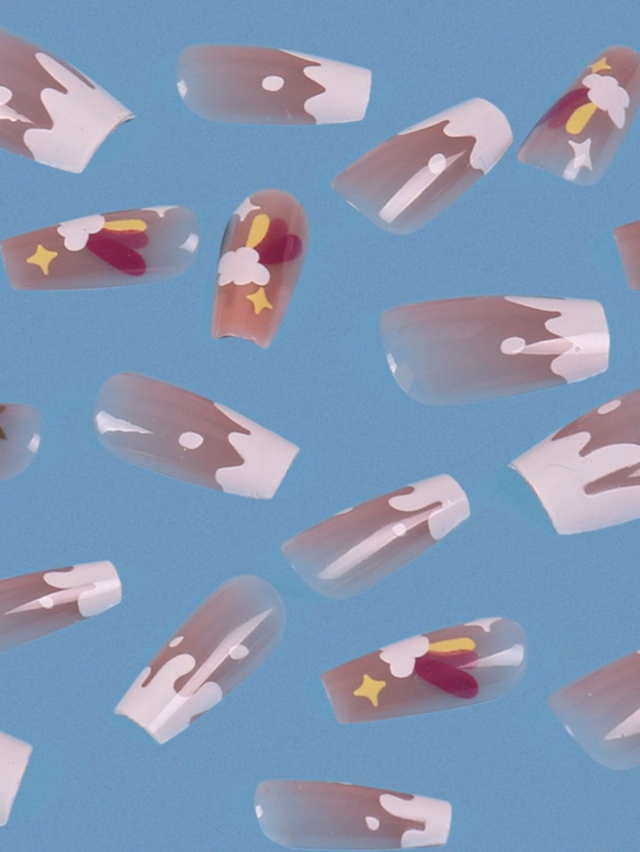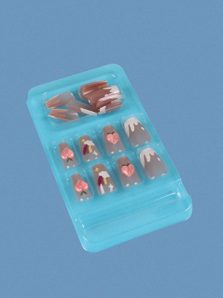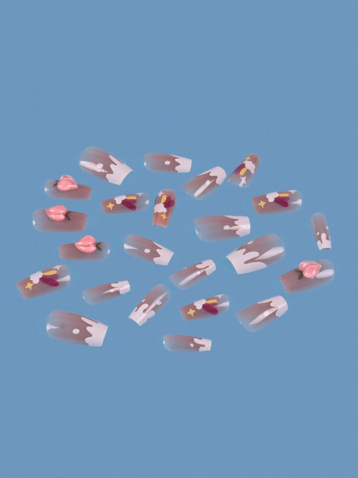 24pcs Long Coffin Peach Decor Fake Nail & 1sheet Tape