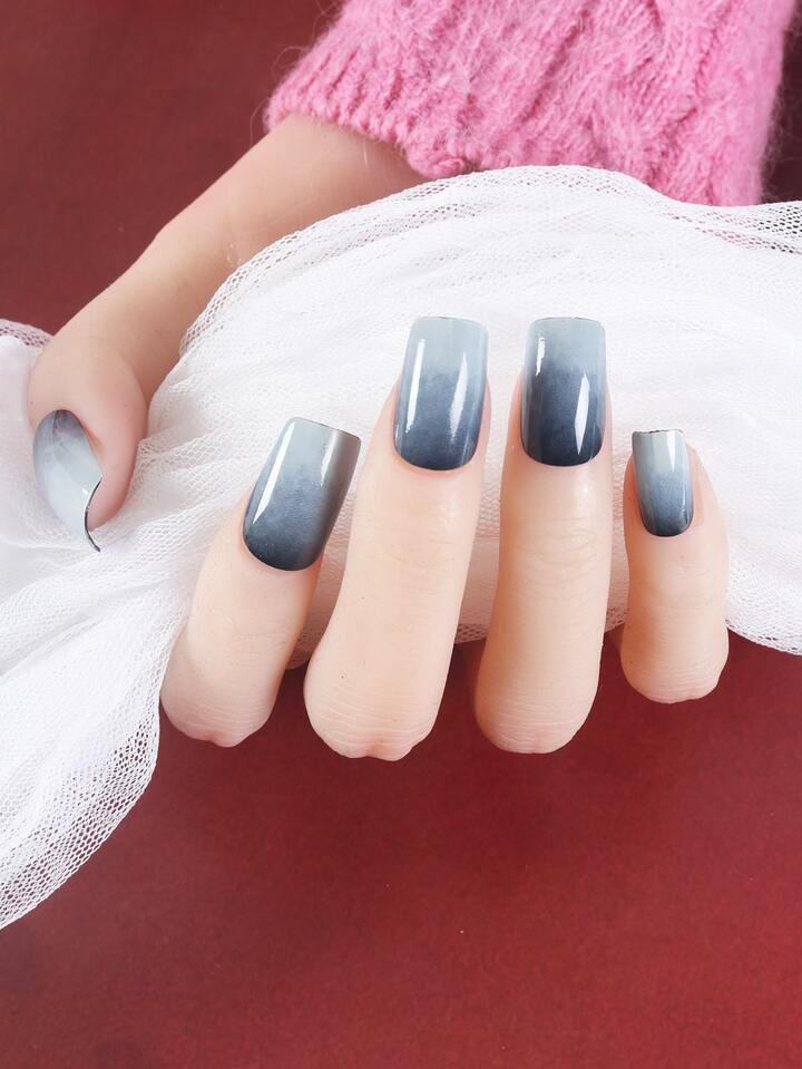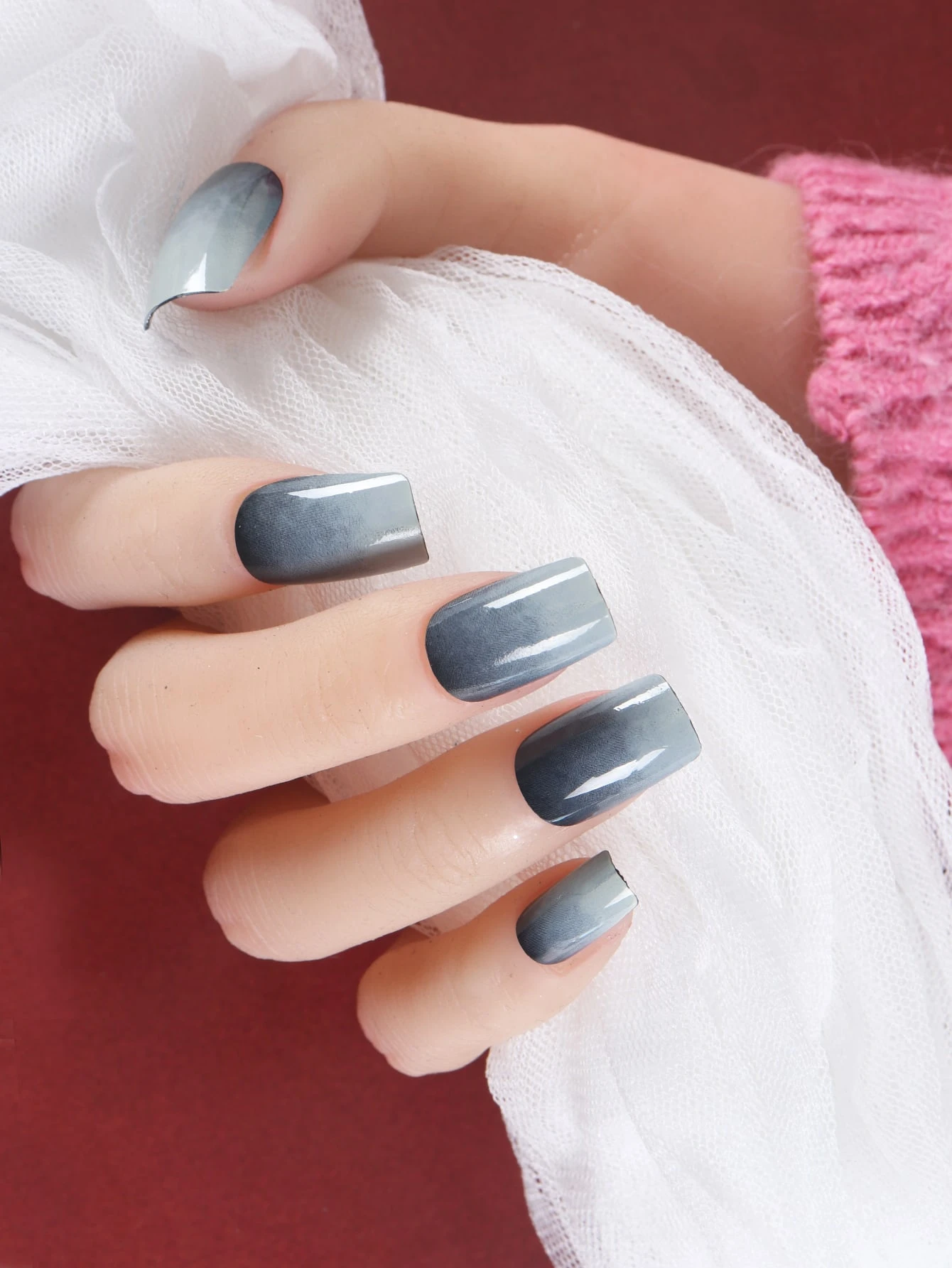 24pcs Short Square Ombre Fake Nail & 1sheet Tape