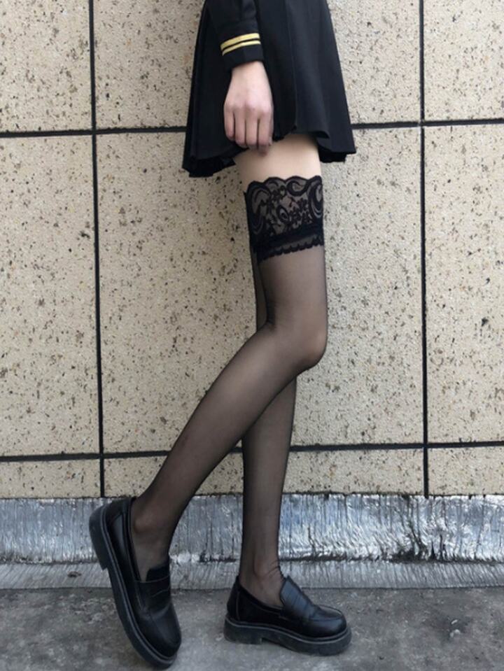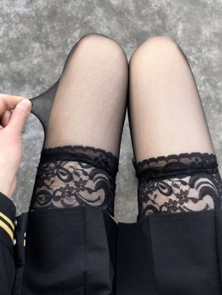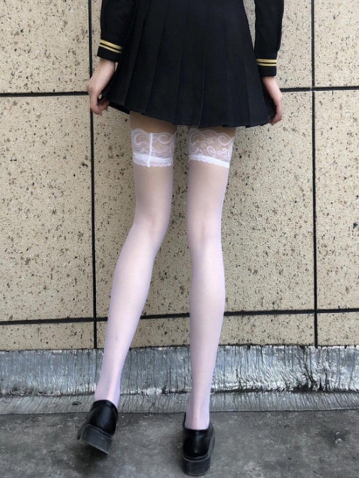 2pairs Contrast Lace Over The Knee Socks