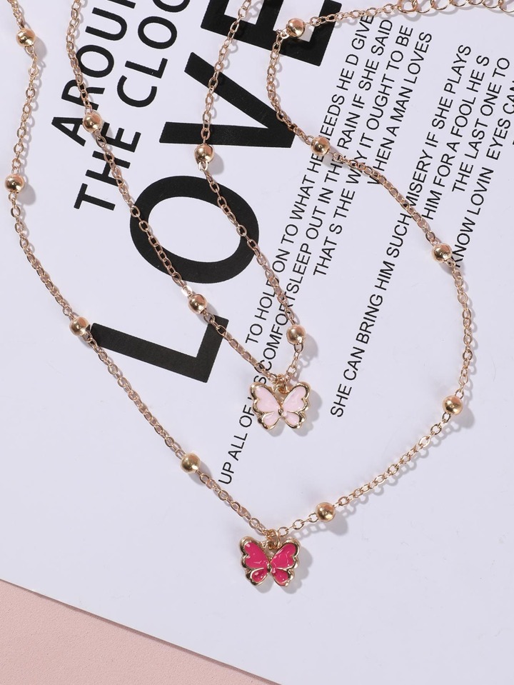 2pcs Butterfly Pendant Necklace