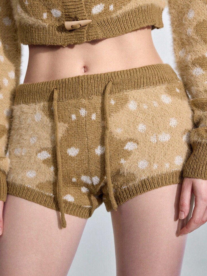 2pcs Fairycore Women Deer Pattern Cropped Knitted Sweater Set