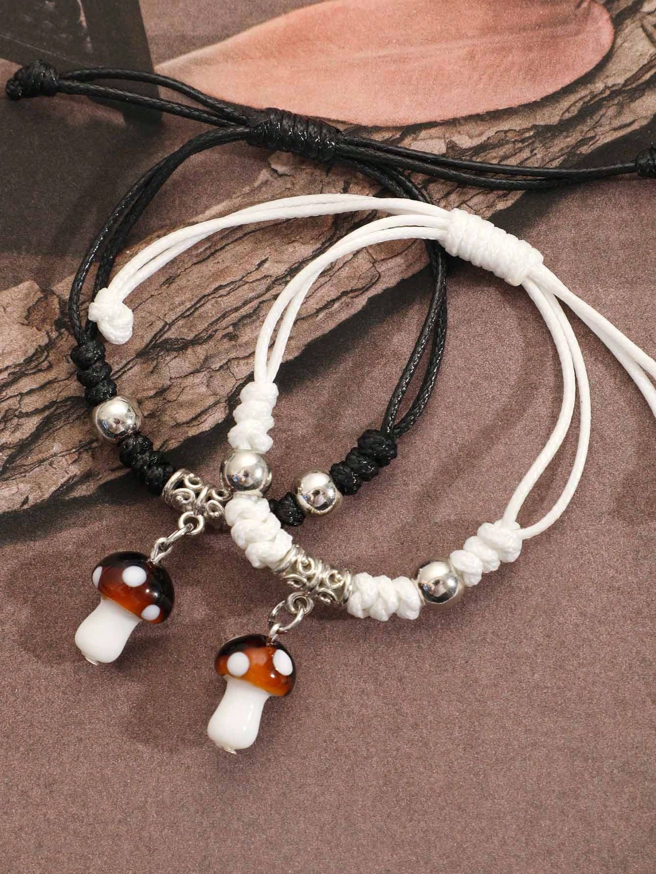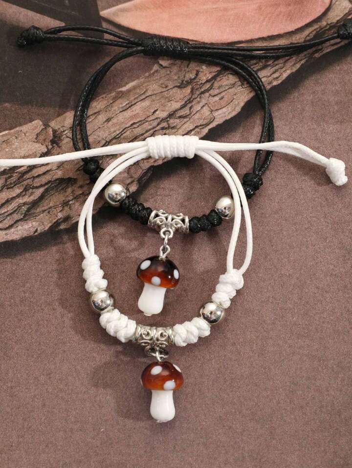 2pcs Fashion Glass Mushroom Charm Bracelet For Women For Daily Decoration