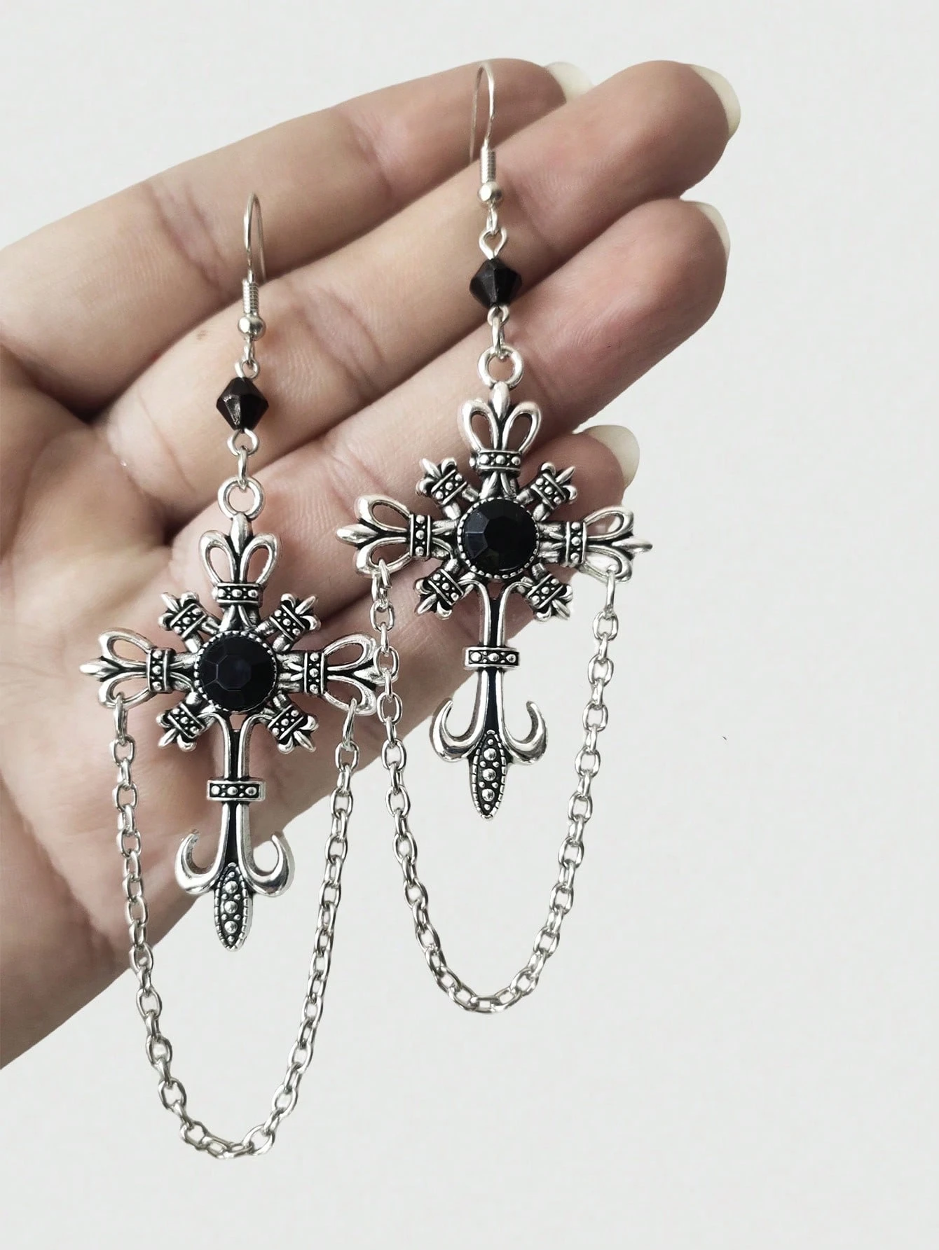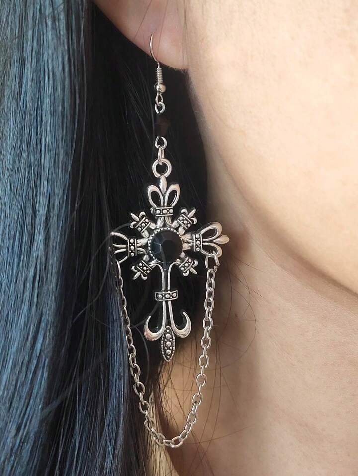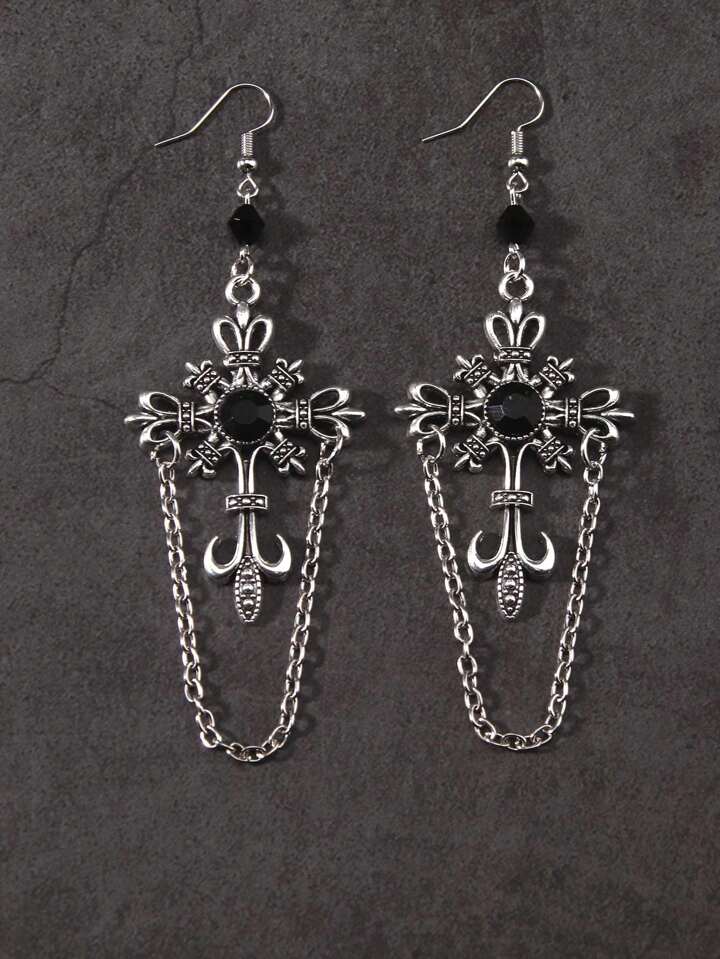 2pcs Gothic Cross Chain Earrings, Halloween
