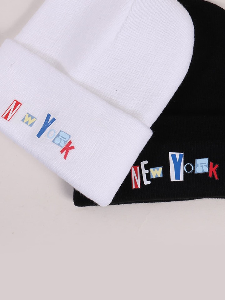 2pcs Letter Graphic Beanie