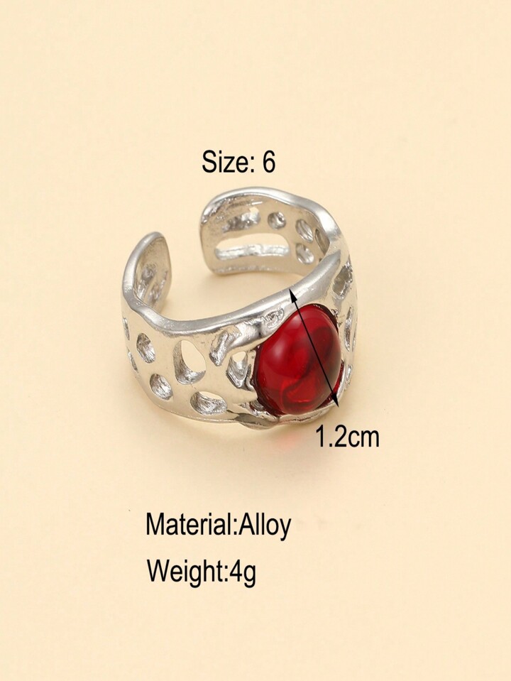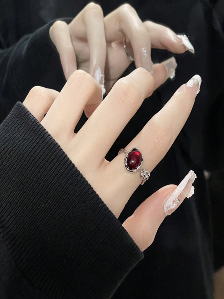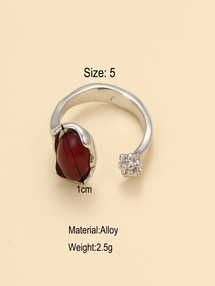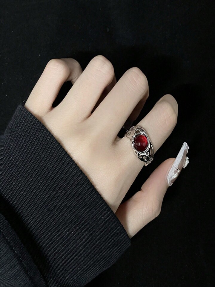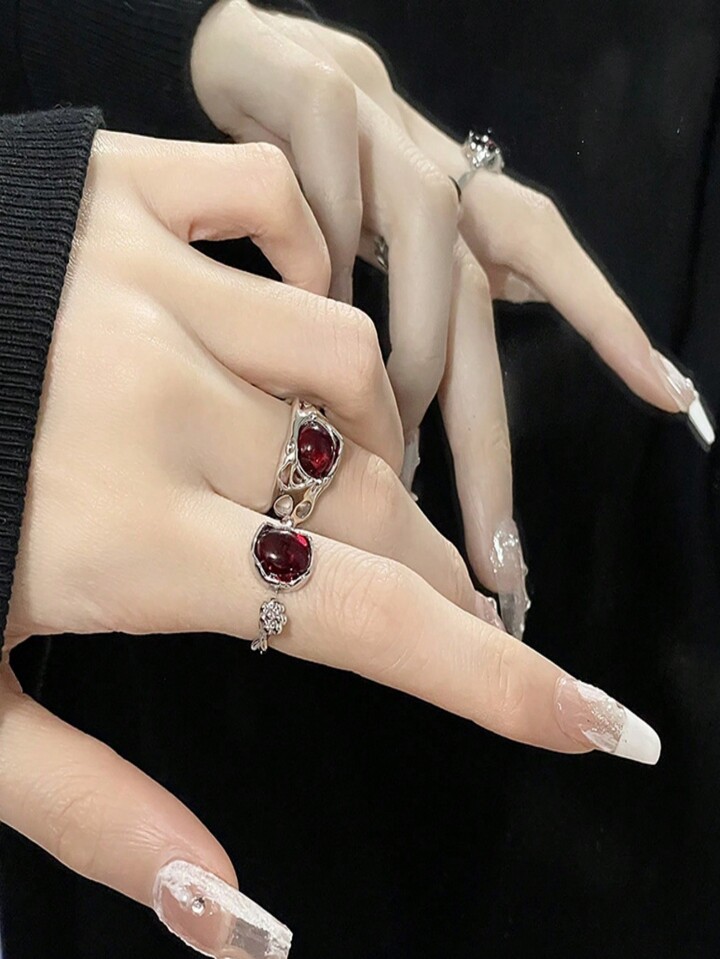 2pcs Ring Set Asymmetric Red Petal Design Open Ring For Women's Black Gothic Style