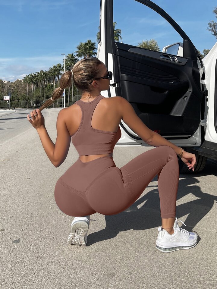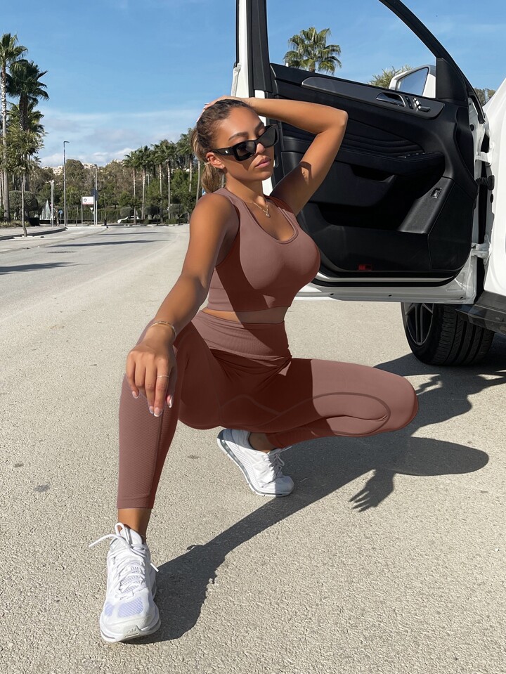 2pcs Seamless Yoga Set Tracksuit Gym Set Scoop Neck Tank Top Stitching Trim Tummy Control Leggings For Chinese New Year