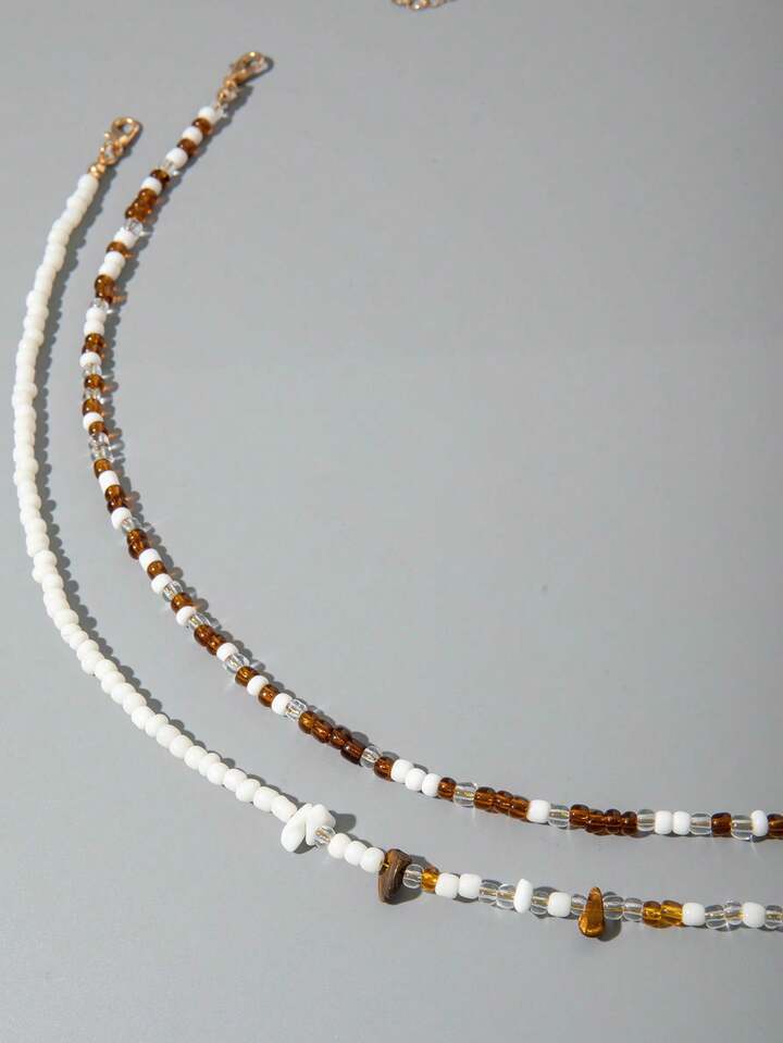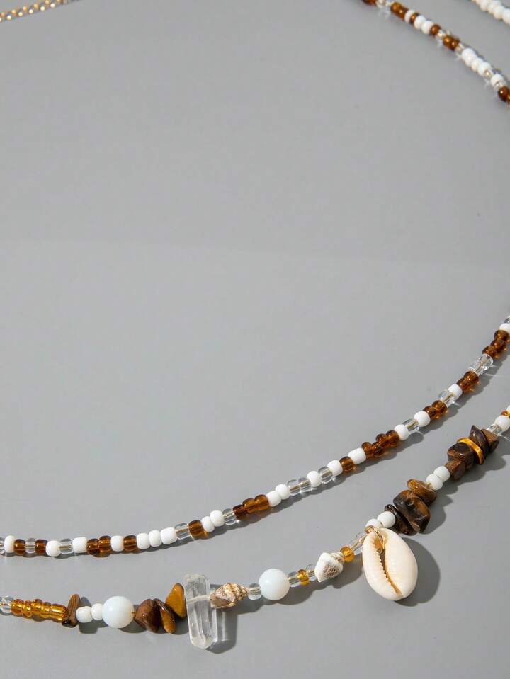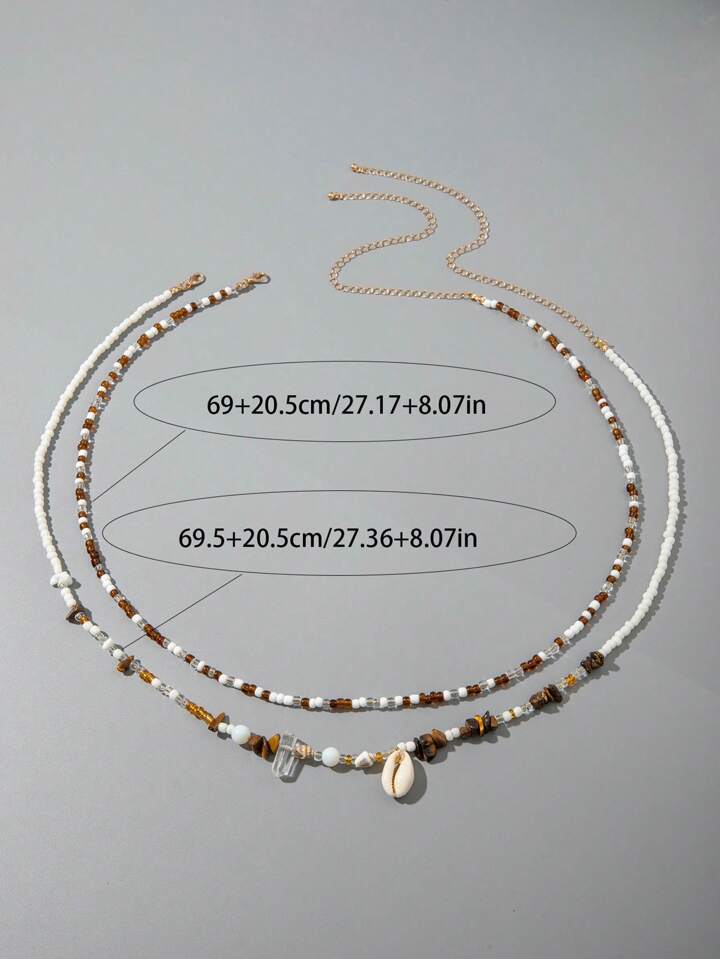 2pcs Set Boho Style Fashion Bead, Resin, Glass Beads, Asymmetrical Shell Shape Pendant Necklace/Waist Chain, Suit For Women Girls Summer Beach Party Holiday Casual, Gift