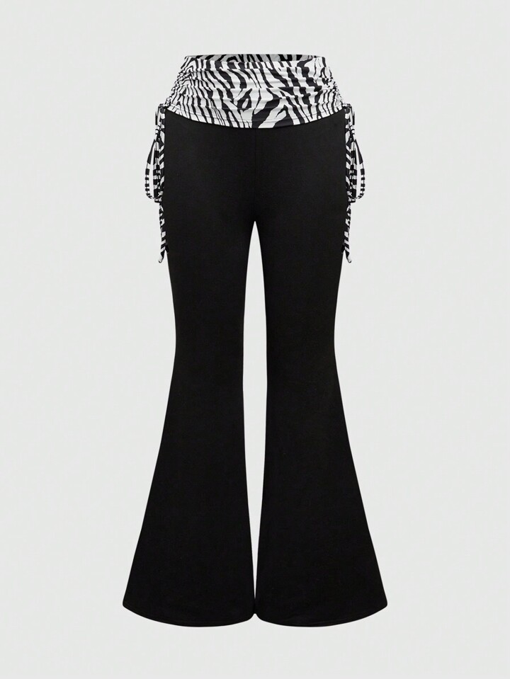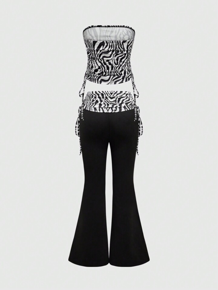 2pcs Set Women Sexy Letter Rhinestone Leopard Print Tube Top And Drawstring Pants Suit