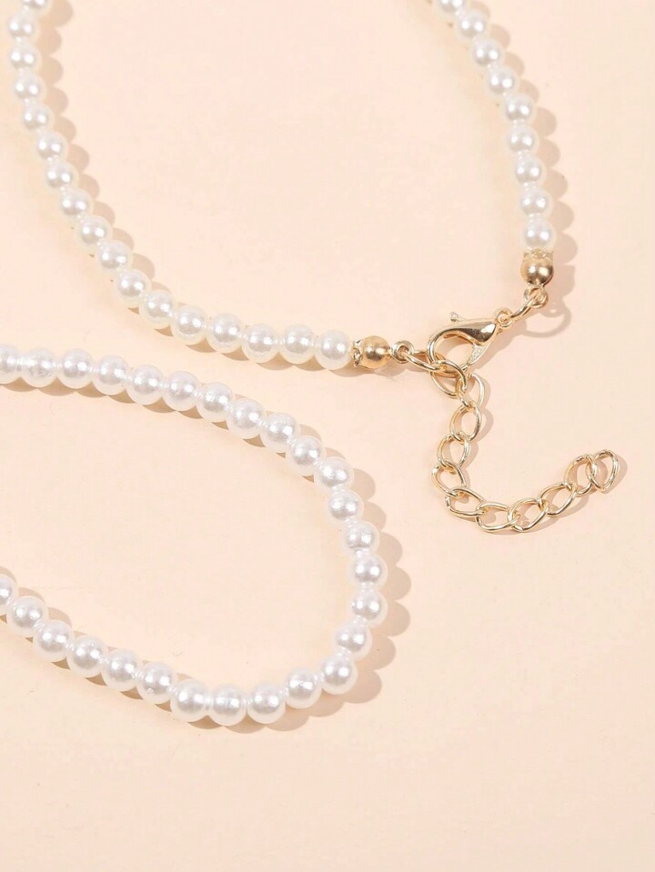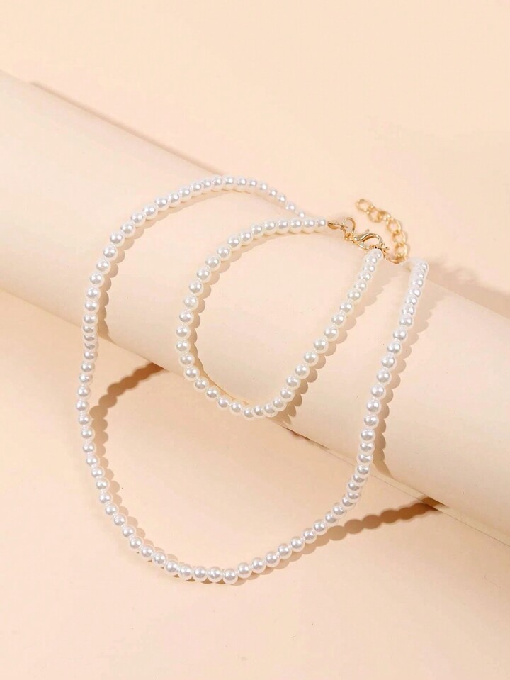 2pcs Simple Faux Pearl Jewelry Set For Women