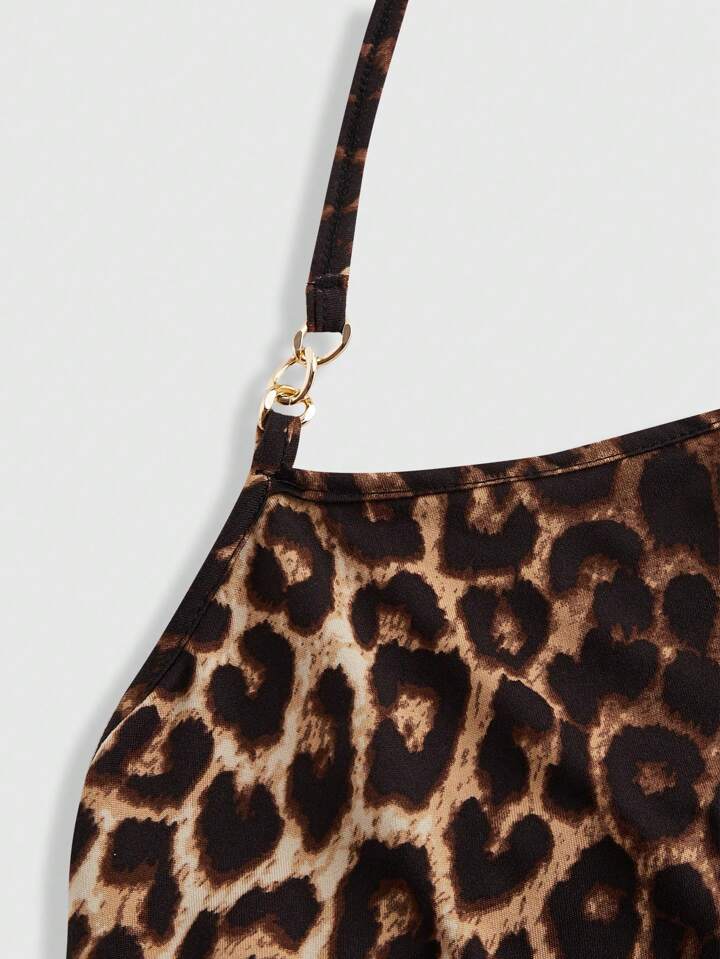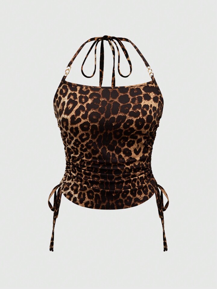 2pcs Zebra & Leopard Print Cami Tank Tops With Drawstring Neck