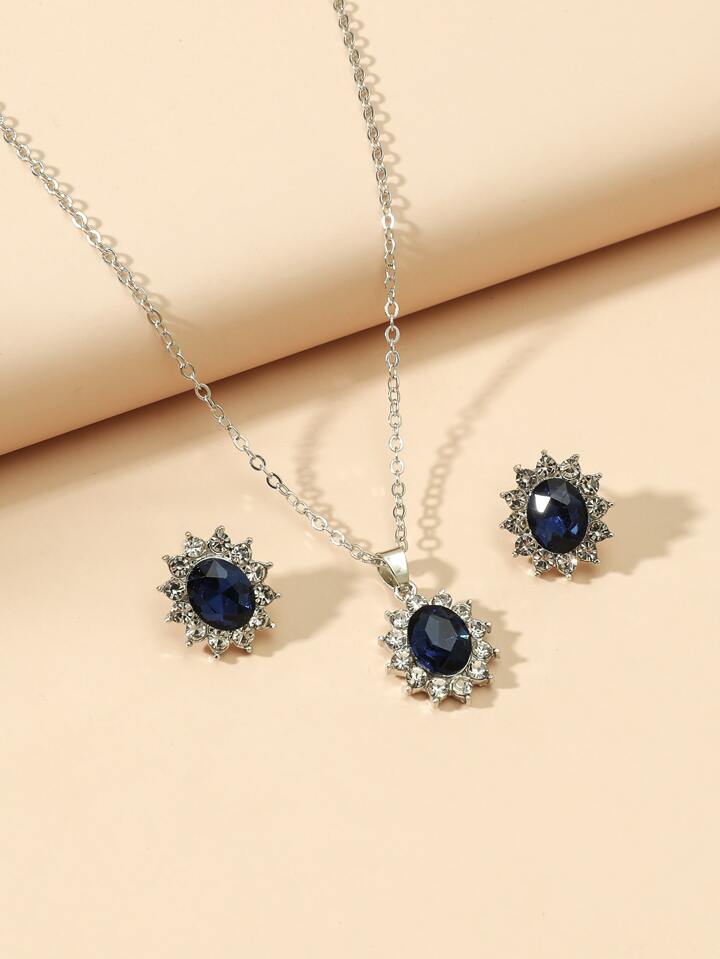 2pcs/set Glamorous Rhinestone Decor Oval Jewelry Set For Women For Gift