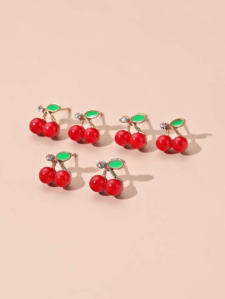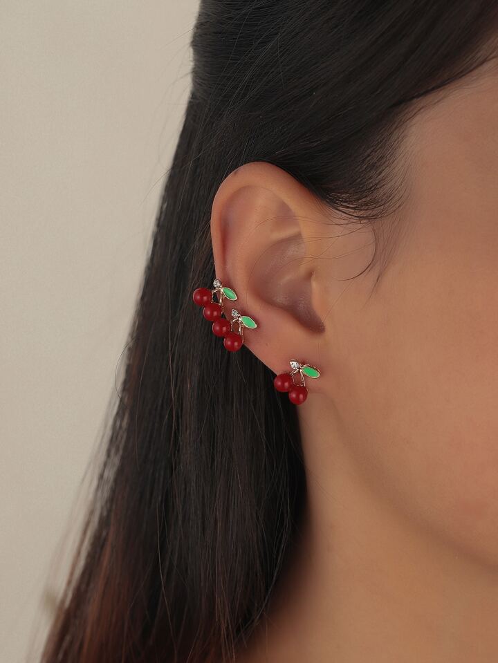 3pairs Cherry Stud Earrings