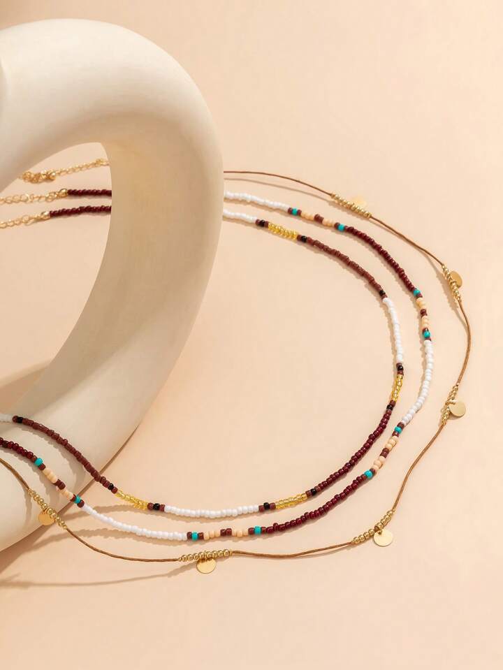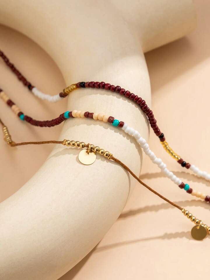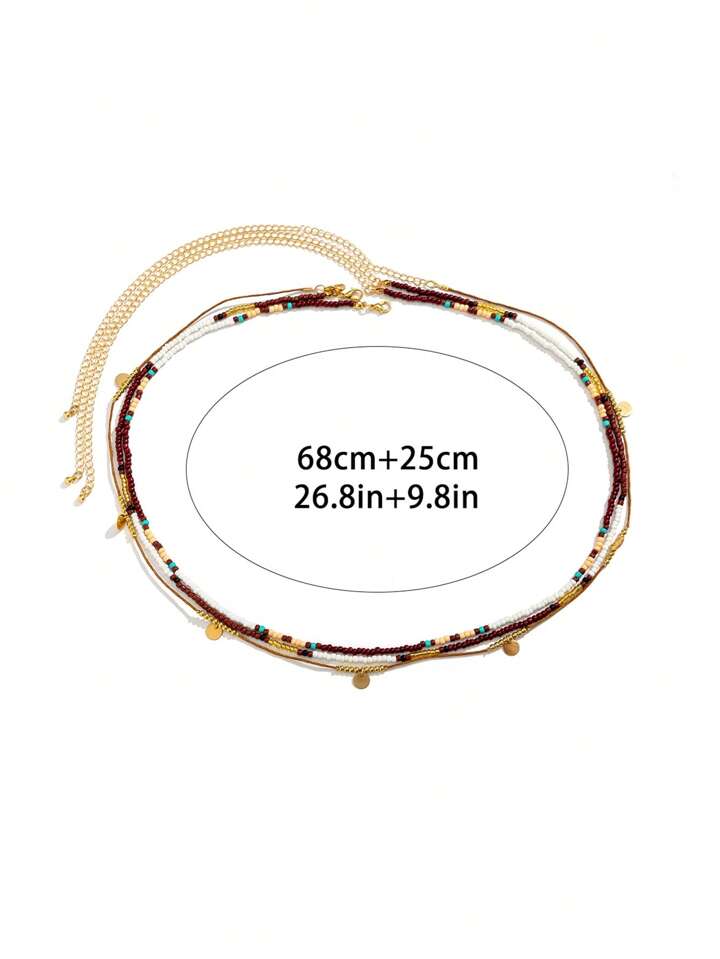 3pcs Bohemian Plastic Round Beaded Waist Chain For Women For Daily Decoration