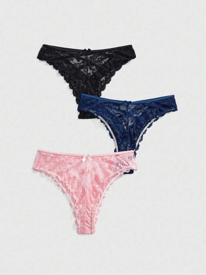 3pcs/Pack Women's Sexy Sheer Butterfly Lace Criss-Cross Thongs