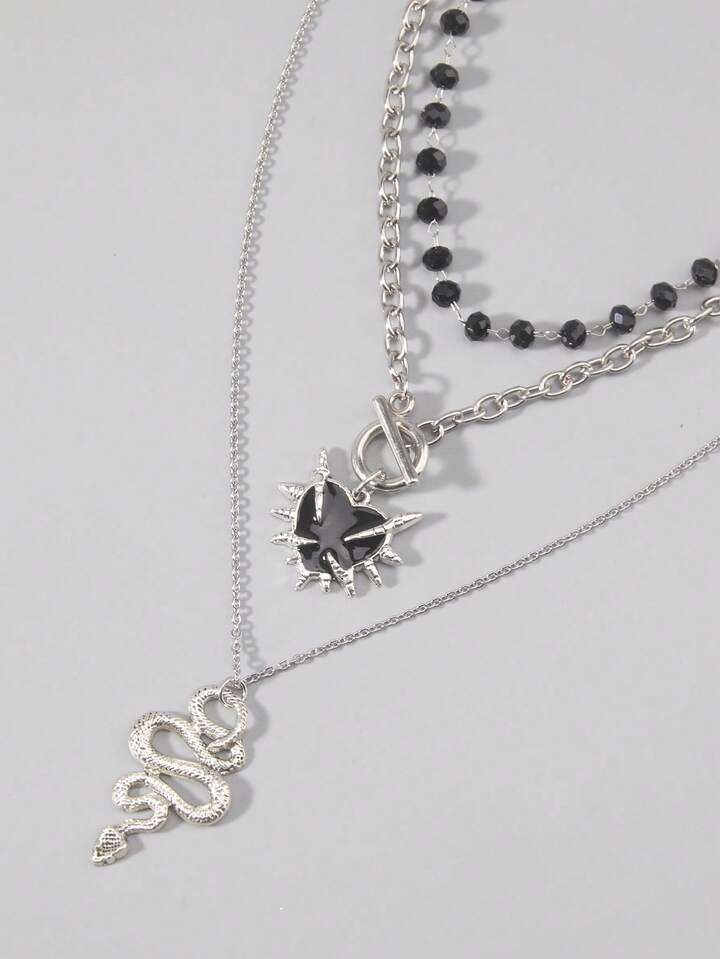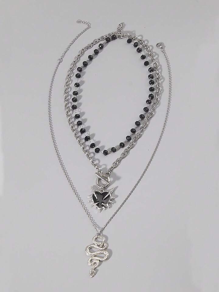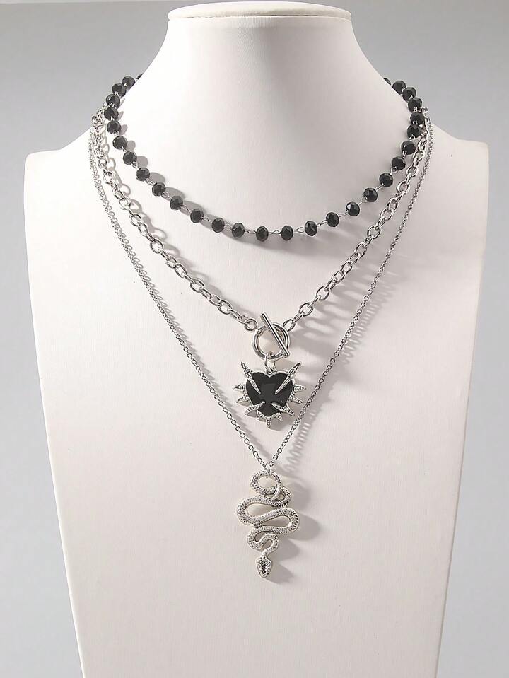 3pcs/Set Gothic Dark Personalized Glass Crystal Black Beaded Vintage Hip Hop Thorns Cross Pendant Necklace, Suitable For Women & Men Daily Wear, Halloween