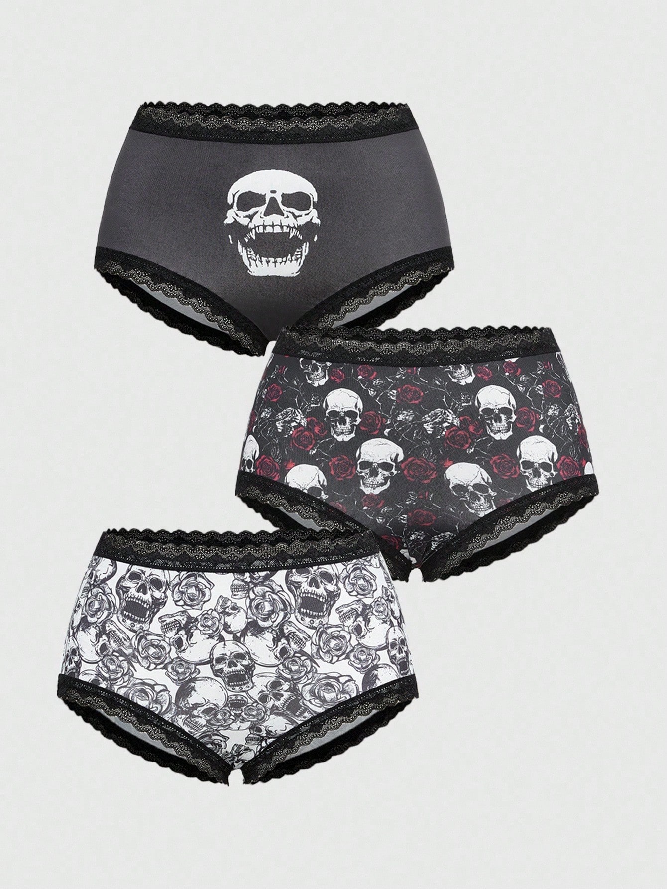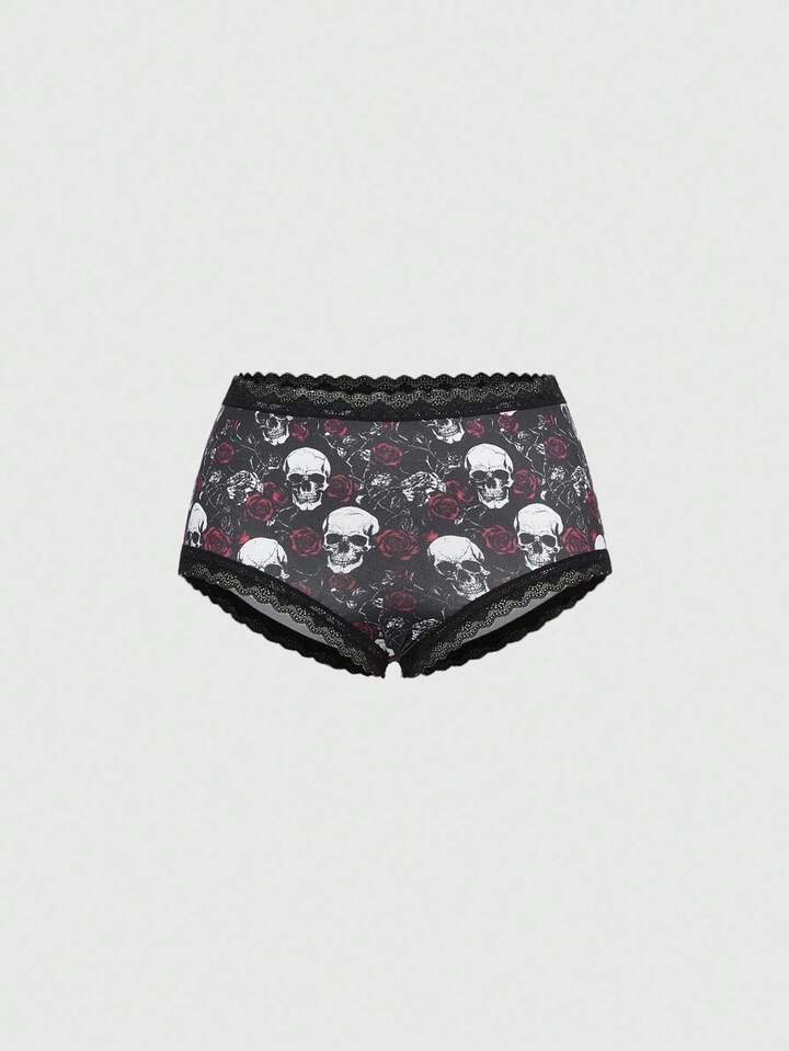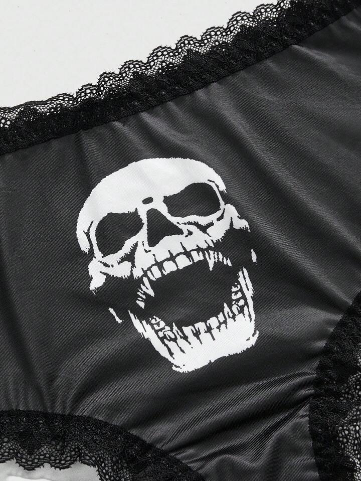 3pcs/Set Gothic Skull & Rose Print Women's Underwear Briefs