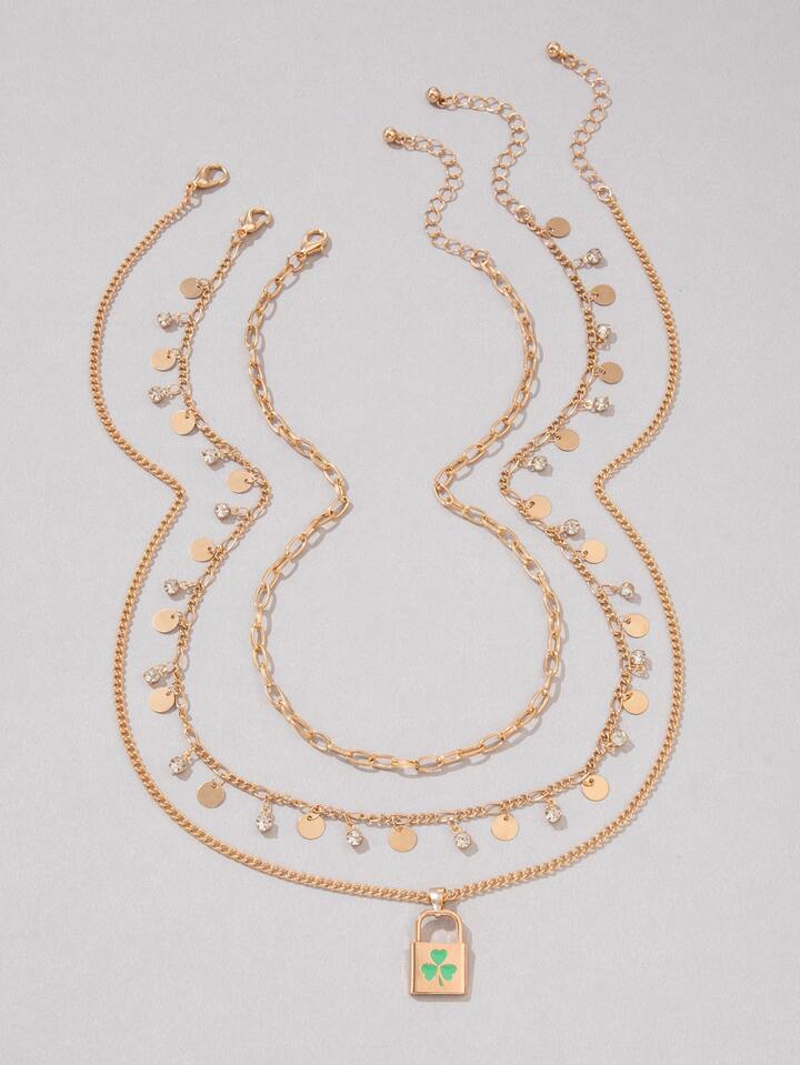 3pcs/set Fashionable Zinc Alloy Rhinestone & Lock Decor Necklace For Women For Dating Gift