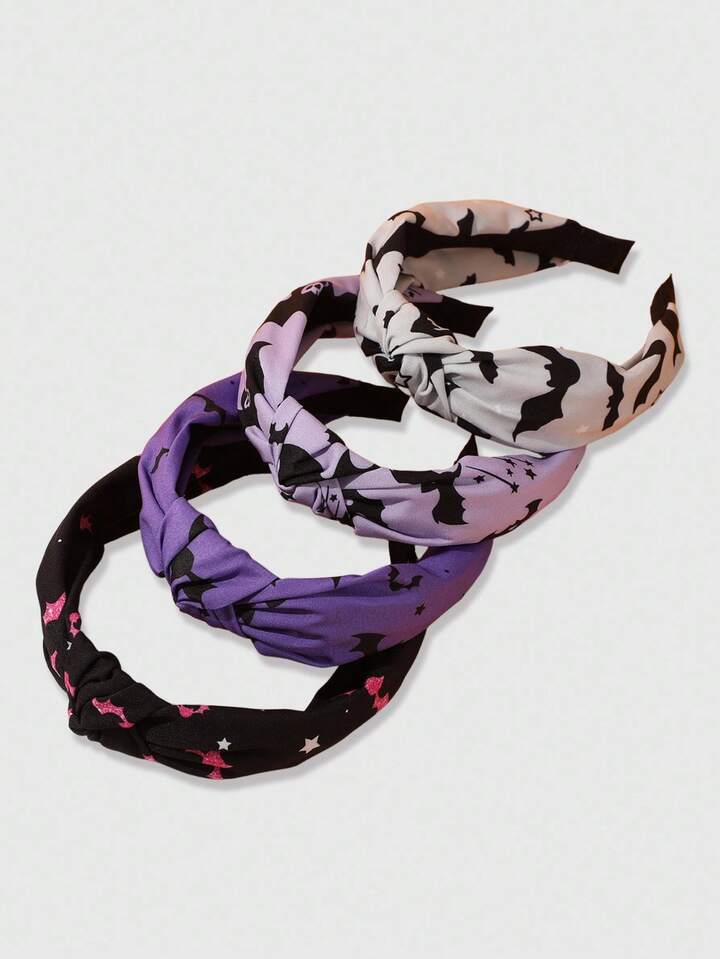 Grunge Punk 4pcs Cute Cartoon Bat Print Women's Twist Headband, Comfortable For Halloween Party Decoration And Daily Use