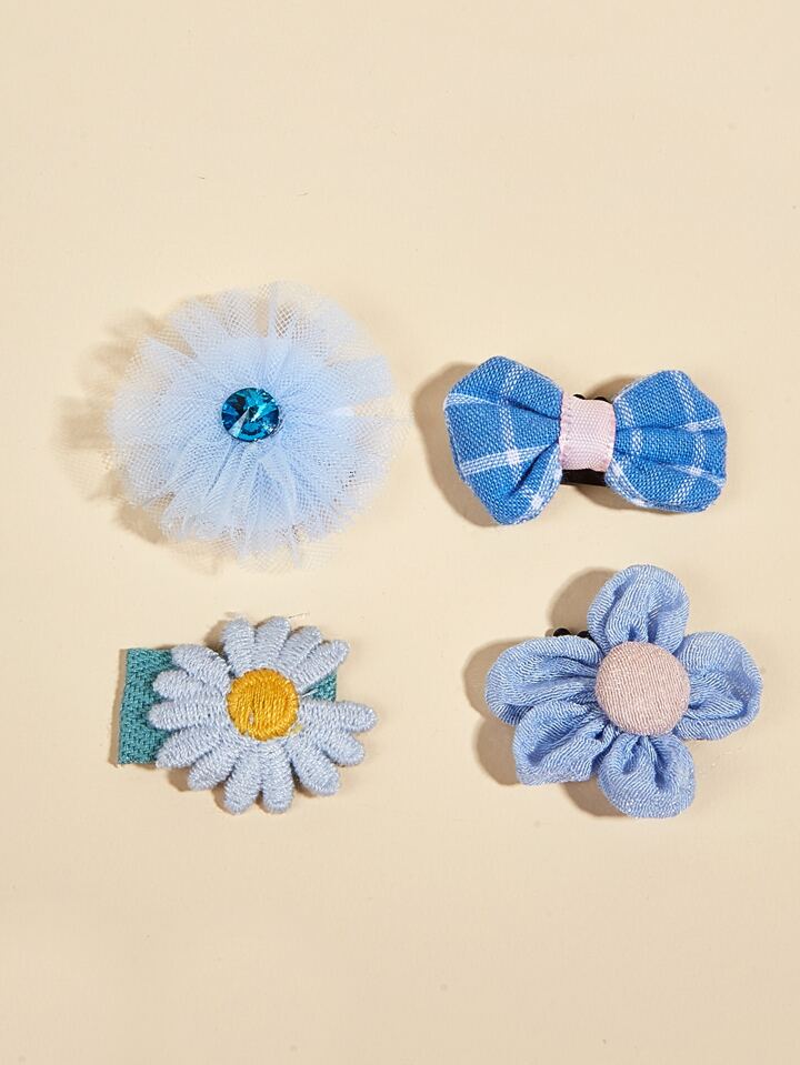 4pcs Flower Pet Hair Clip Set