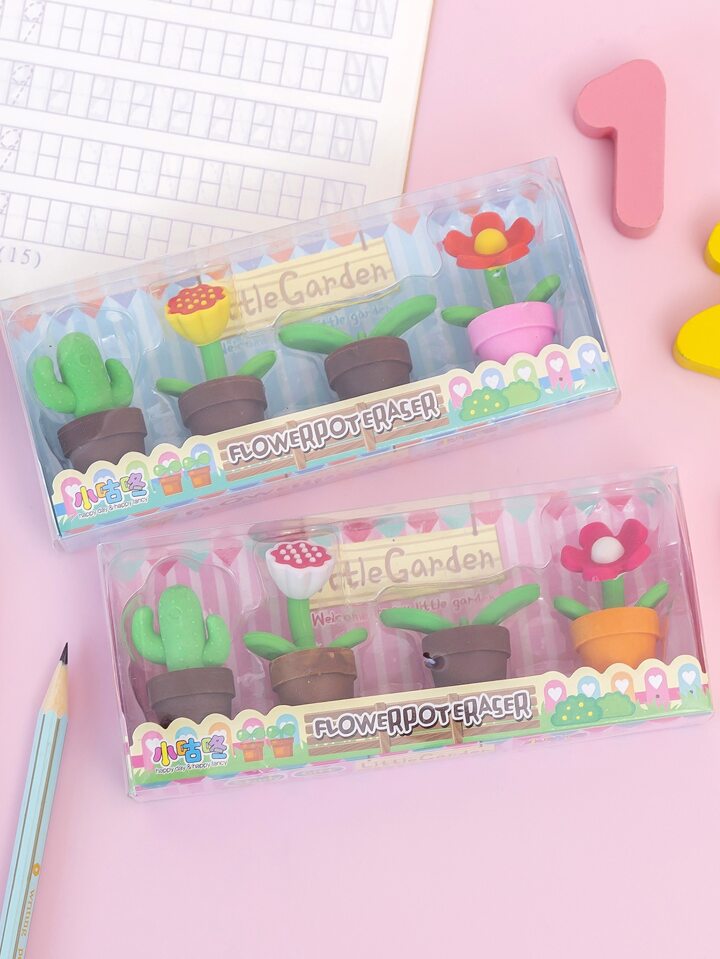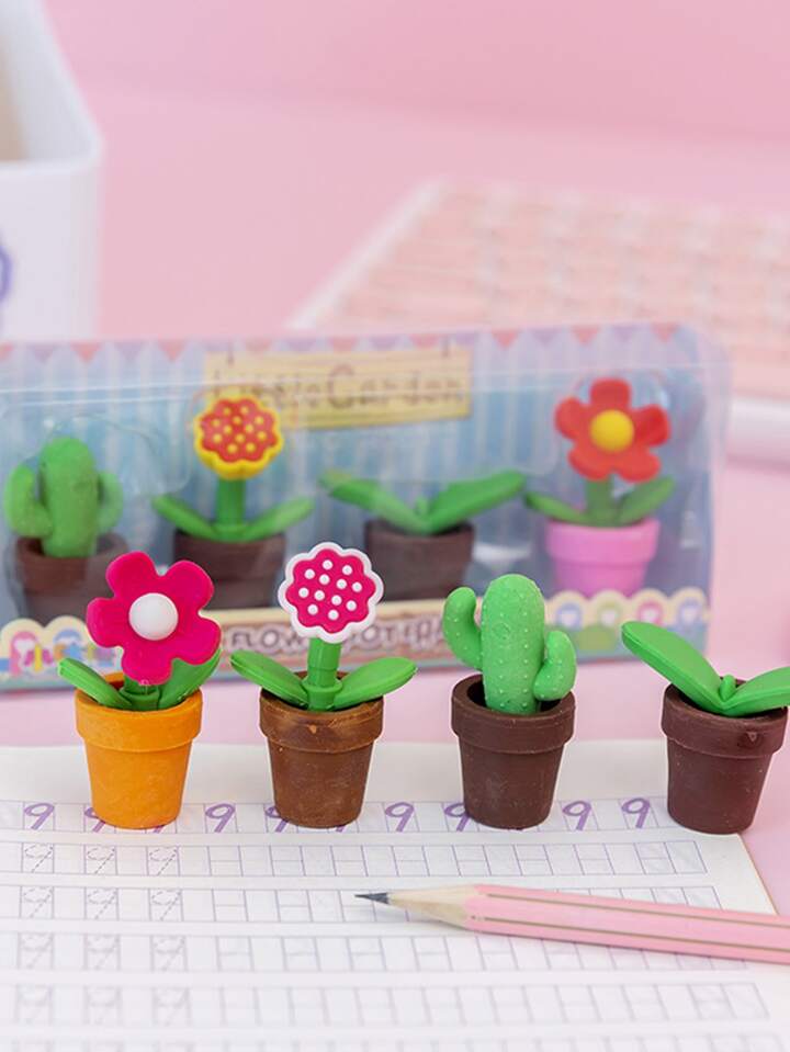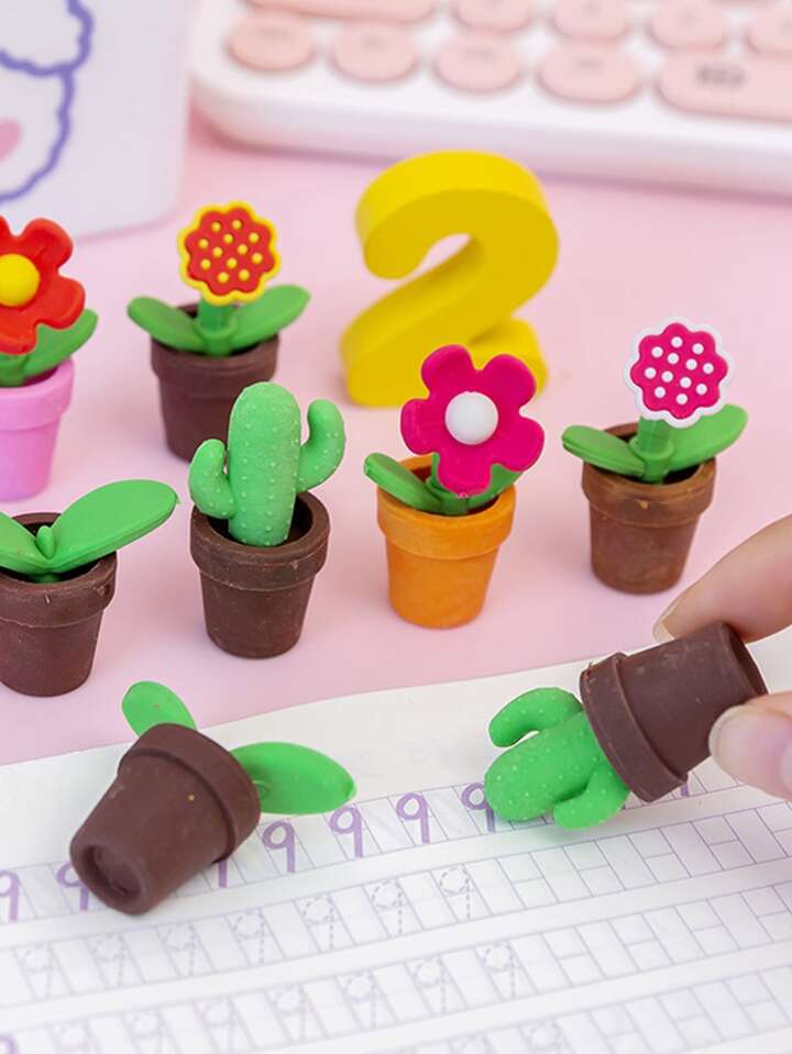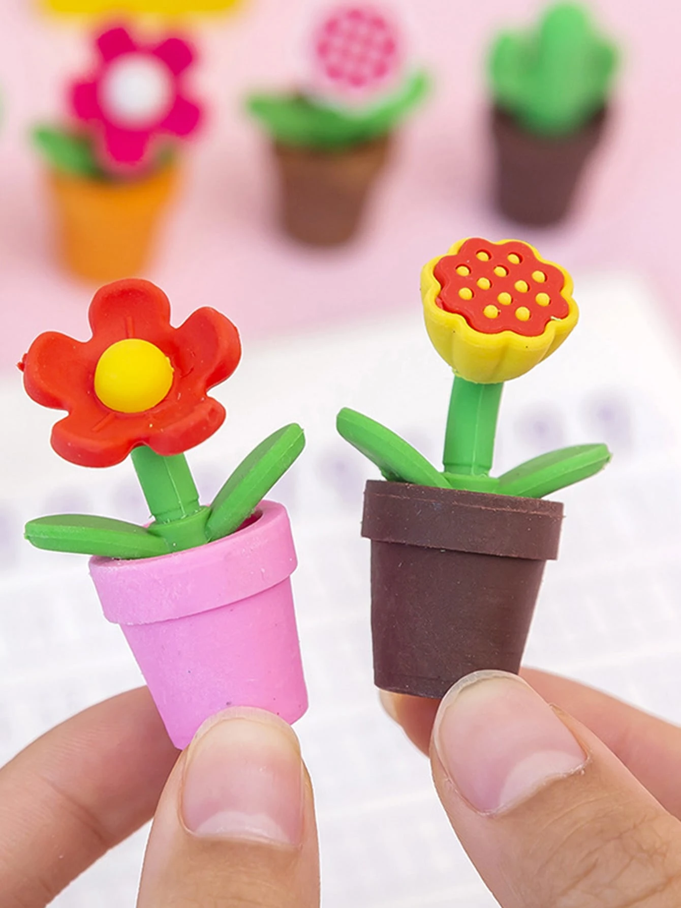 4pcs Potted Plant & Flower Shaped Random Eraser