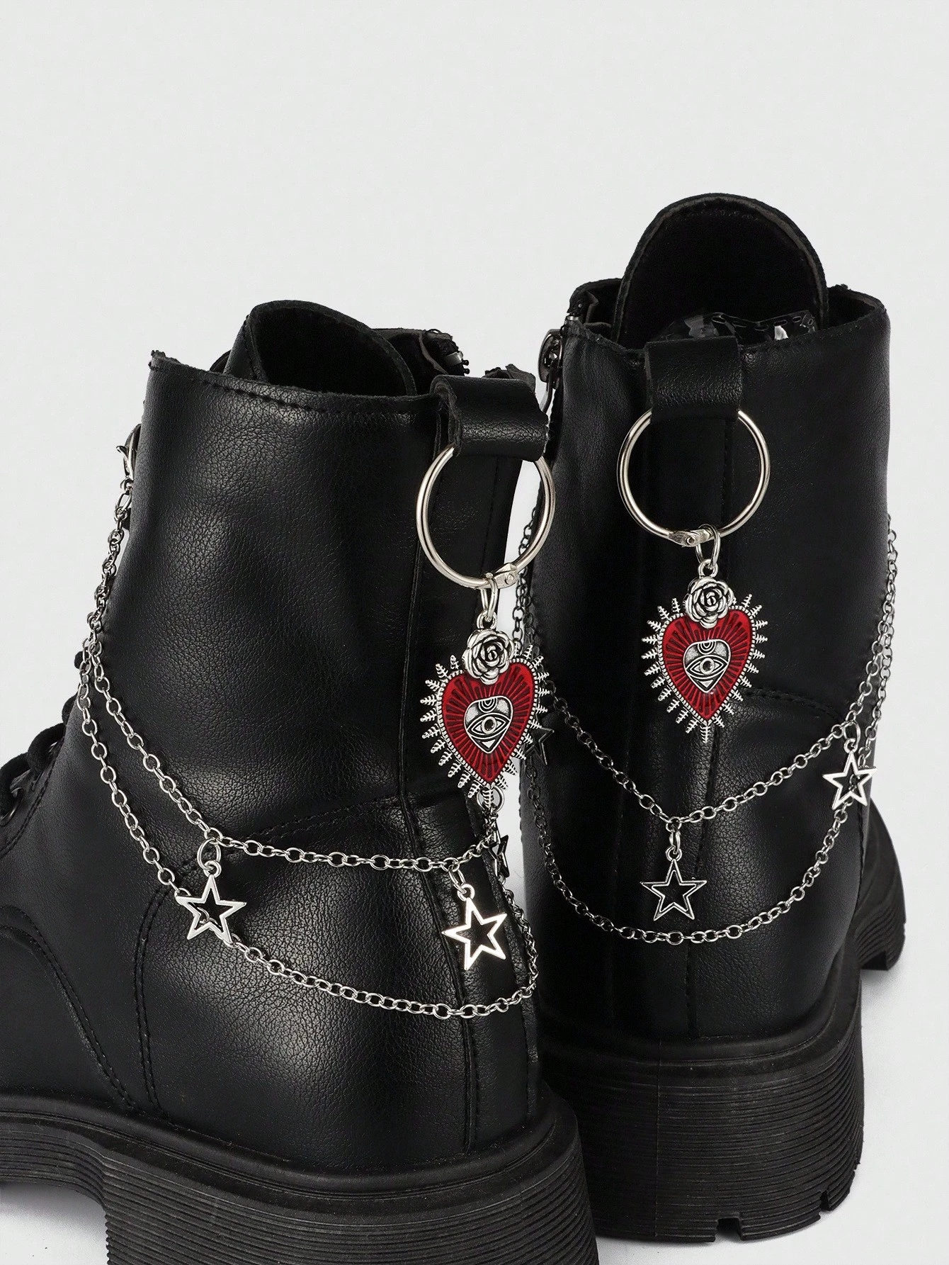 Grunge Punk 4pcs Punk Style Pentagram Chain Shoe Charms, Gothic Black Heart Eye Shoe Pendant Decorations, Halloween Atmosphere Shoe Accessories