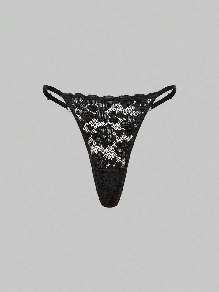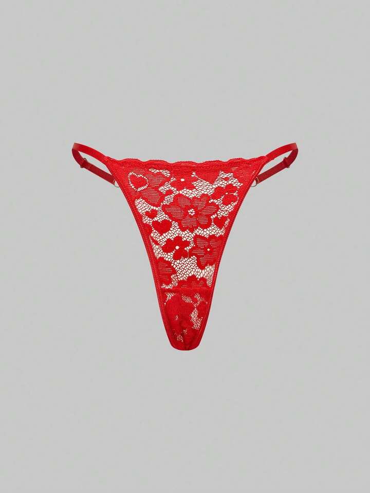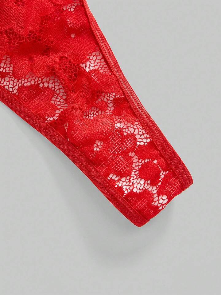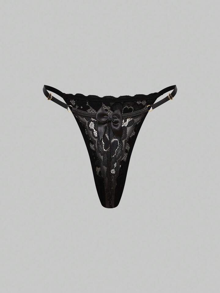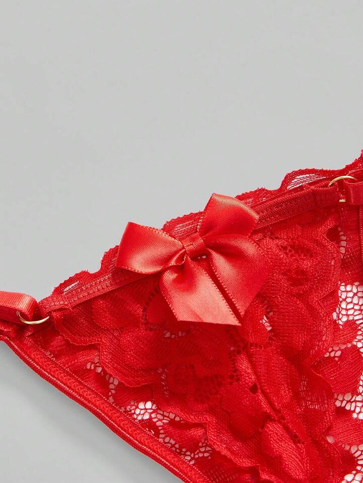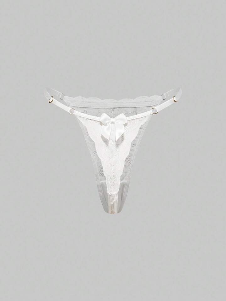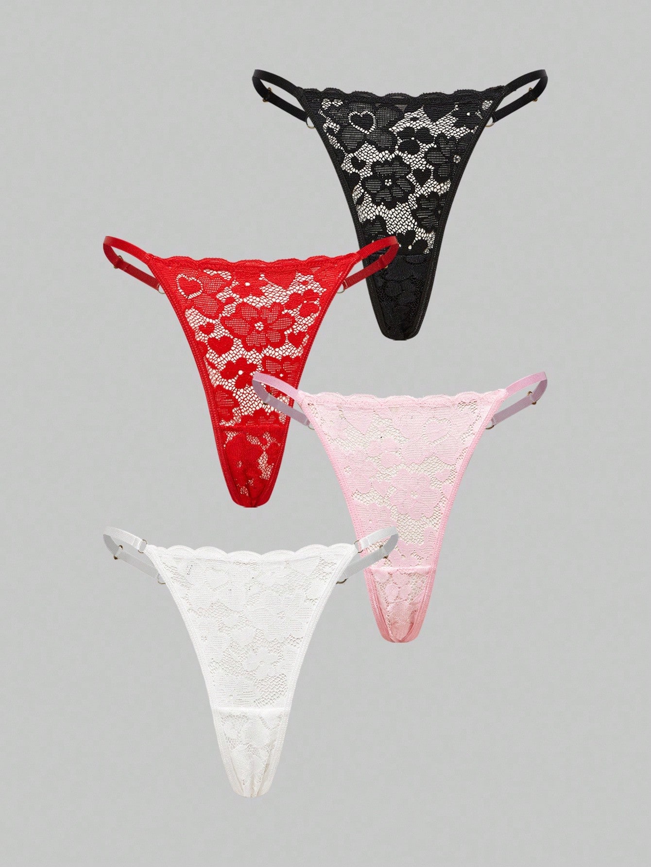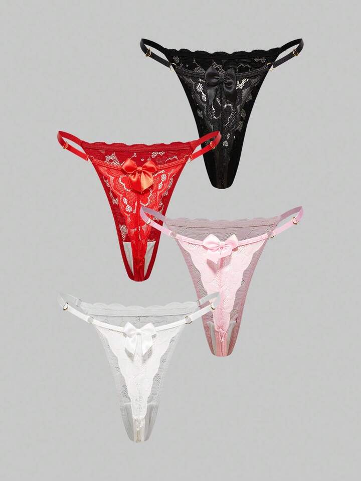4pcs/Set Women Lace Trim Bow Thong Panties