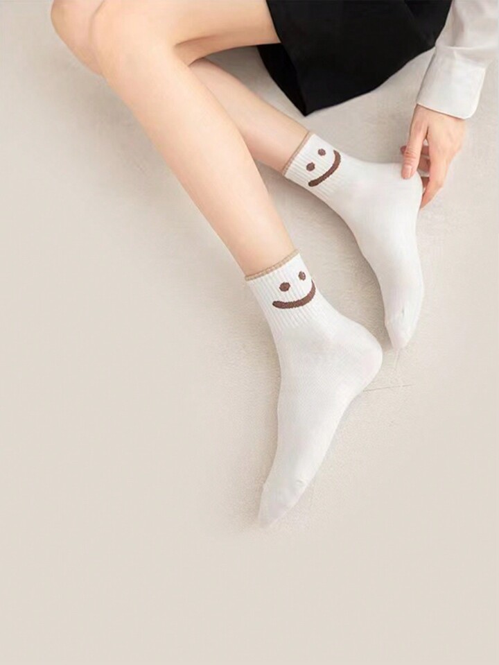 5pairs Women's Vintage Face Mid-calf Socks