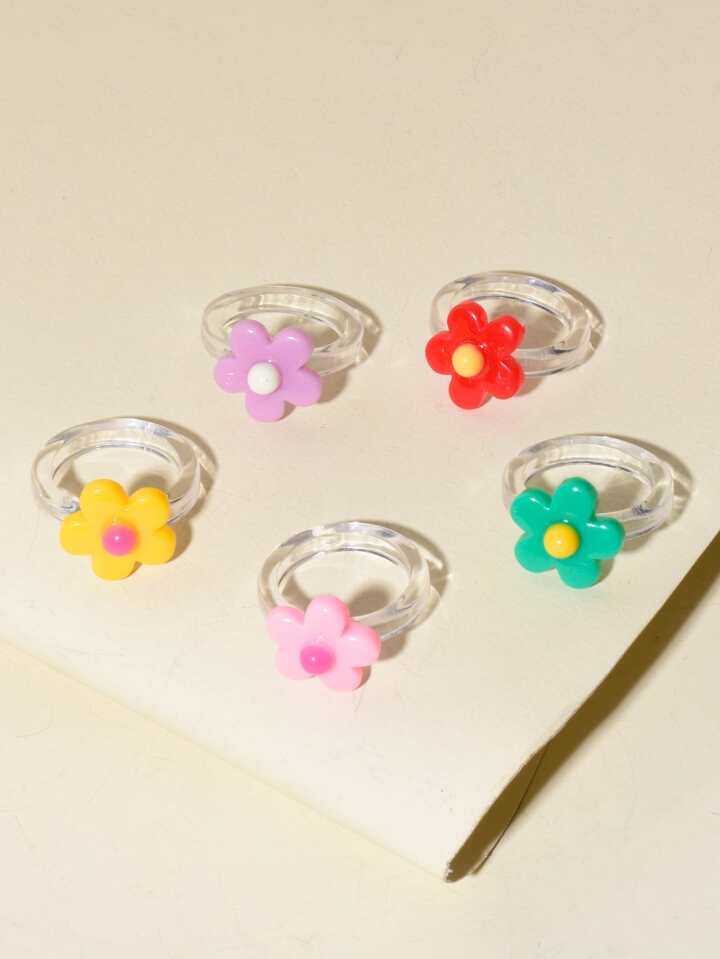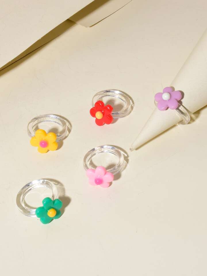 5pcs Flower Resin Ring