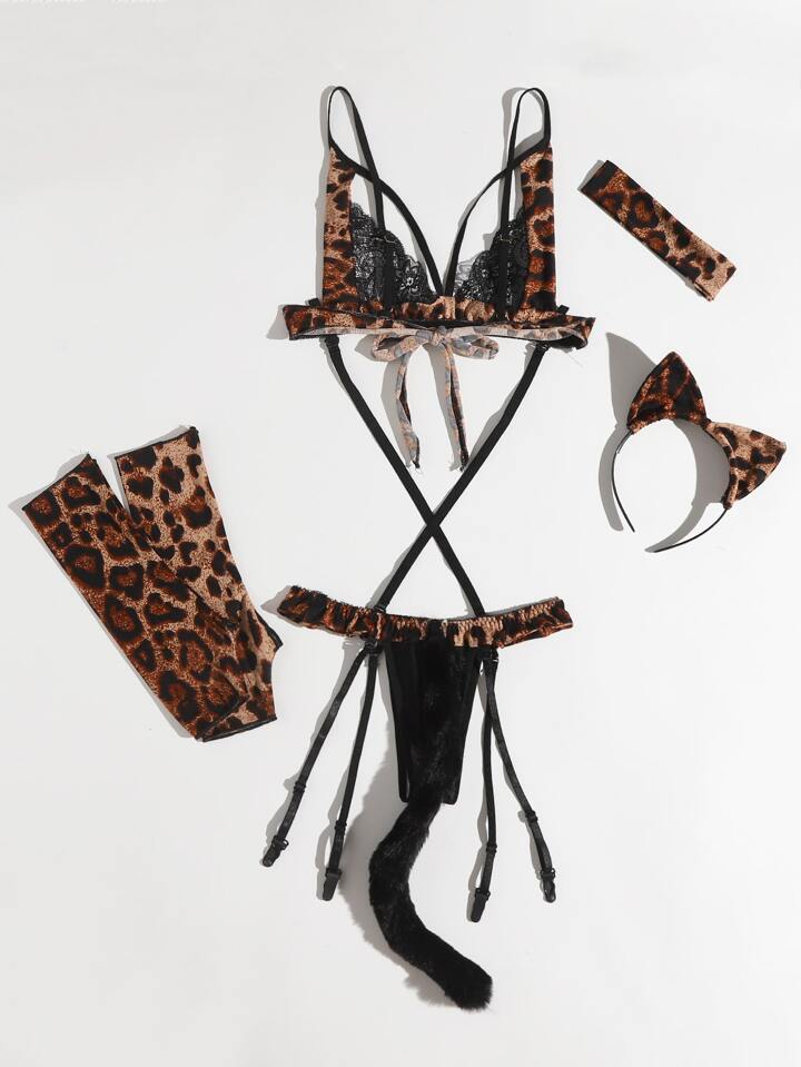 6pack Leopard Garter Lingerie Set