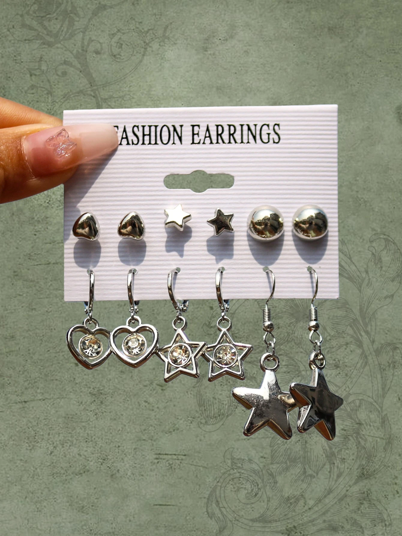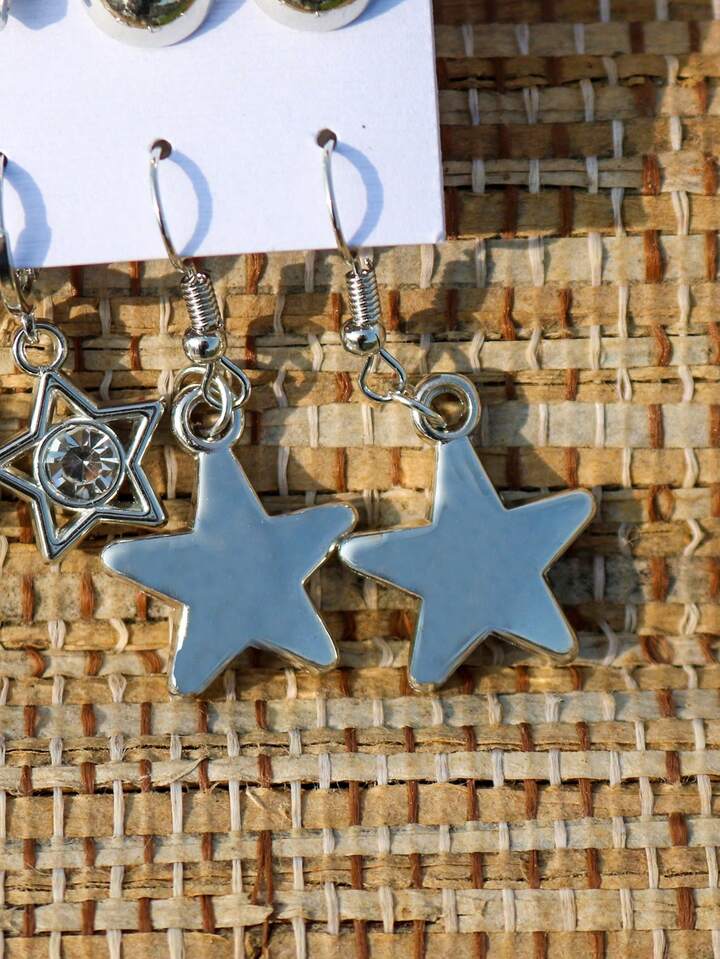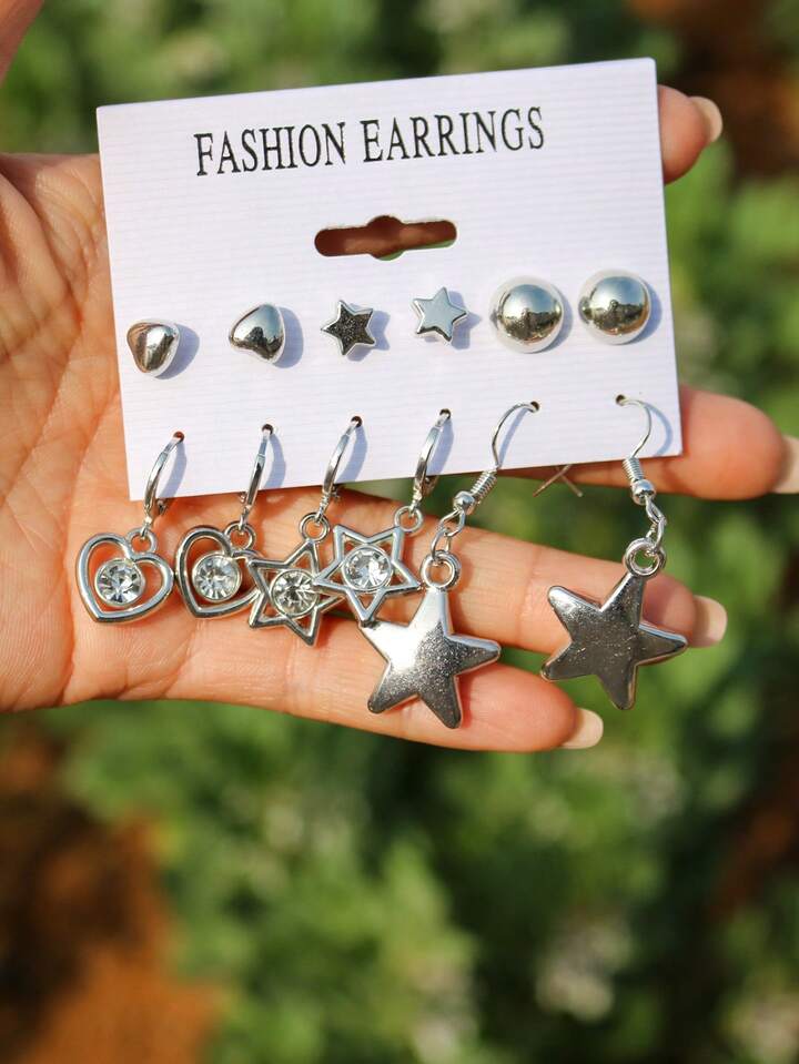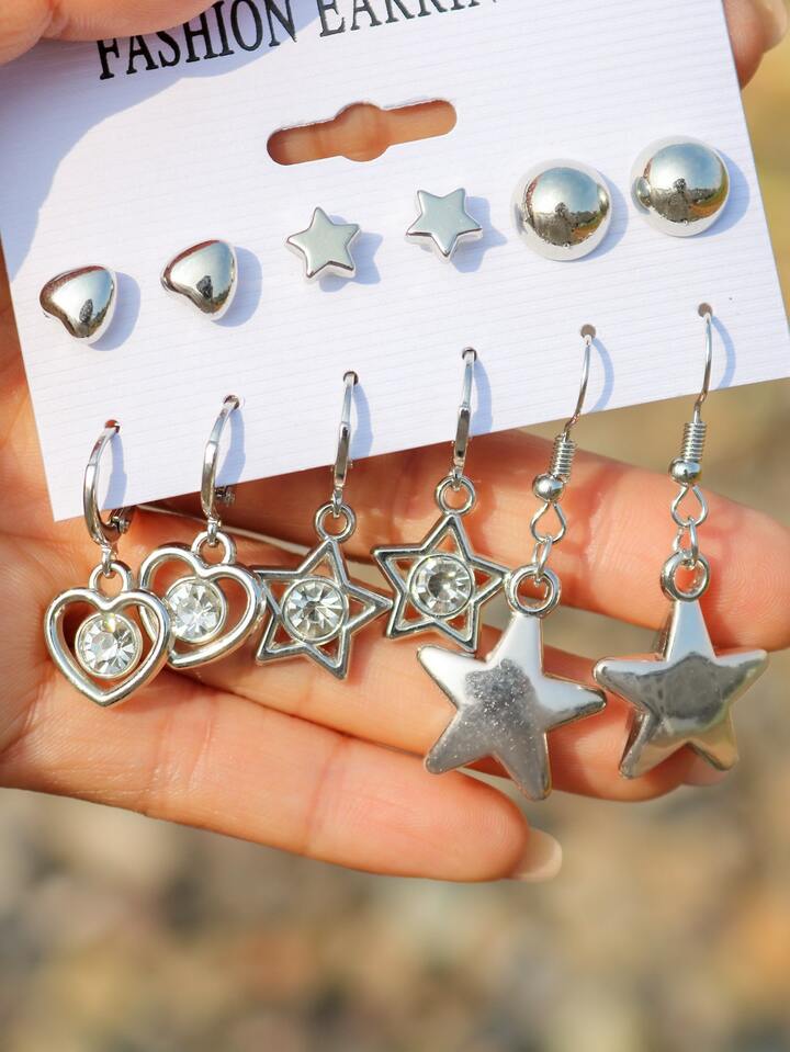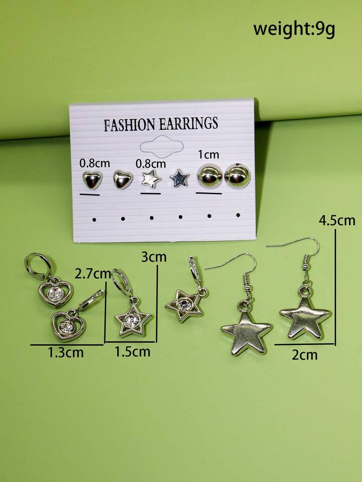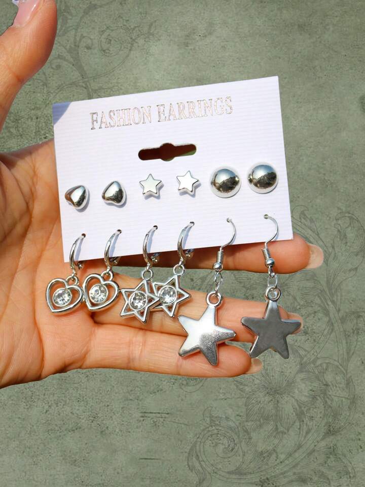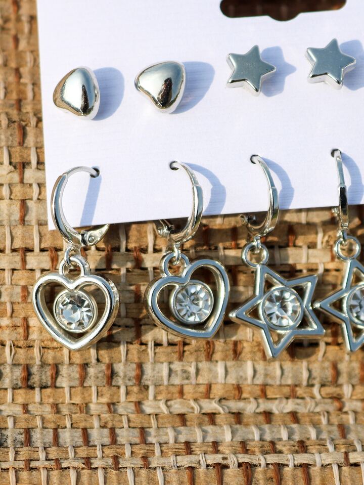 6pairs/set Heart & Star Decor Earrings