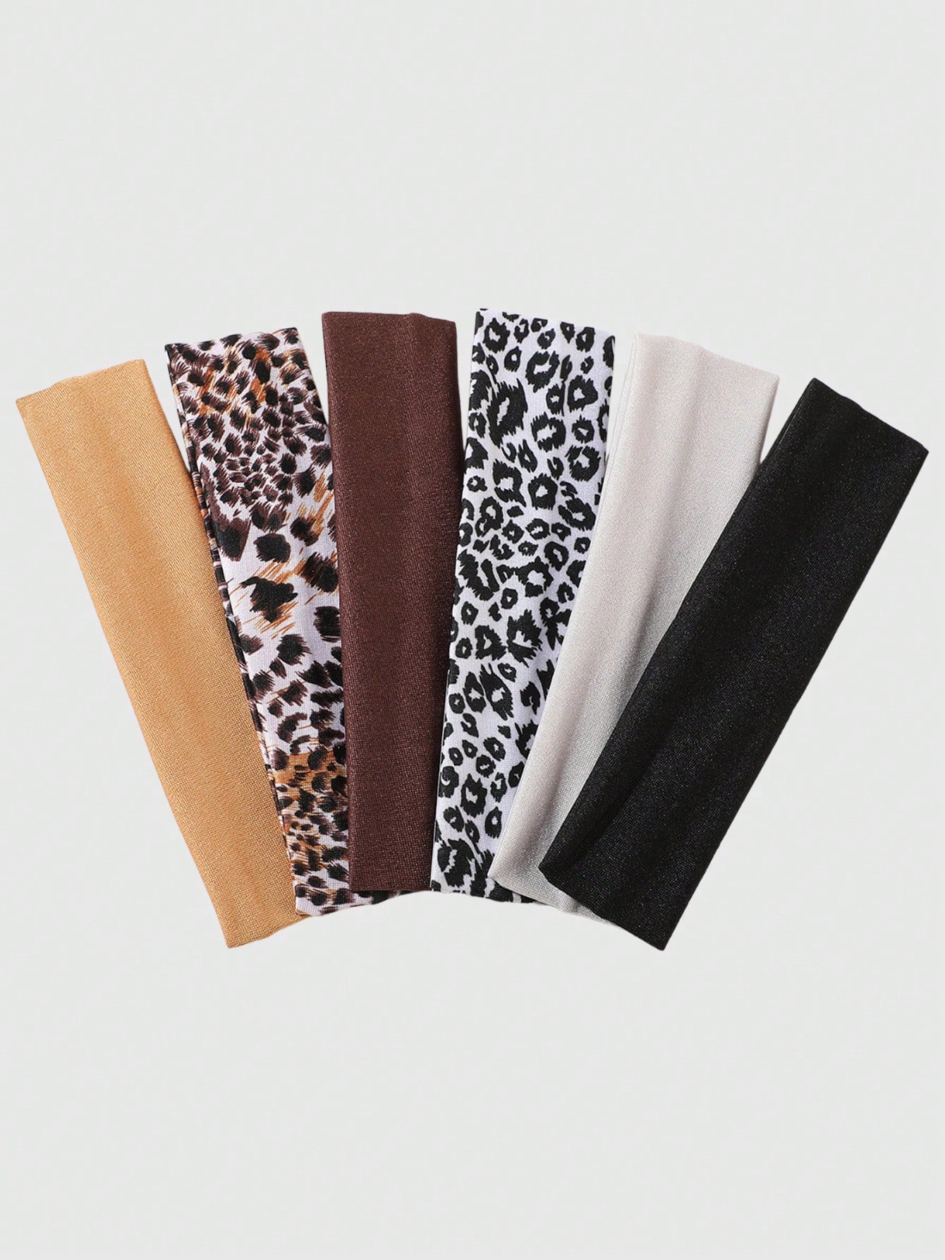 6pcs Solid Color Elastic Headbands, Suitable For Sports And Casual Use