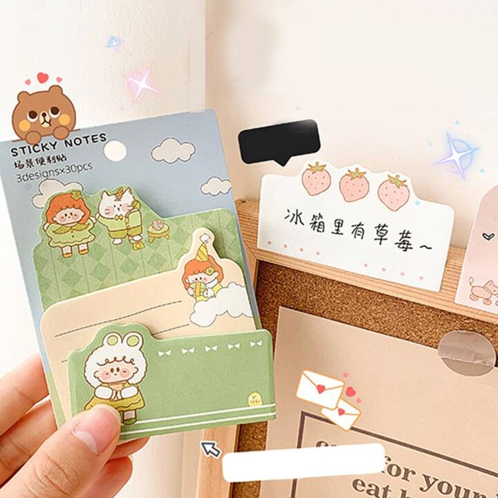 90pcs Creative Multilayer Shaped Memo Pad, Cute Cartoon Adhesive Sticky Notes, Random Style