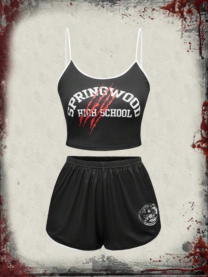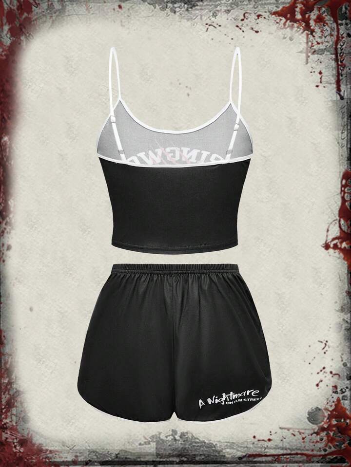 A Nightmare on Elm Street X ROMWE Letter Graphic Ringer Camisole Top & Shorts Pajama Set