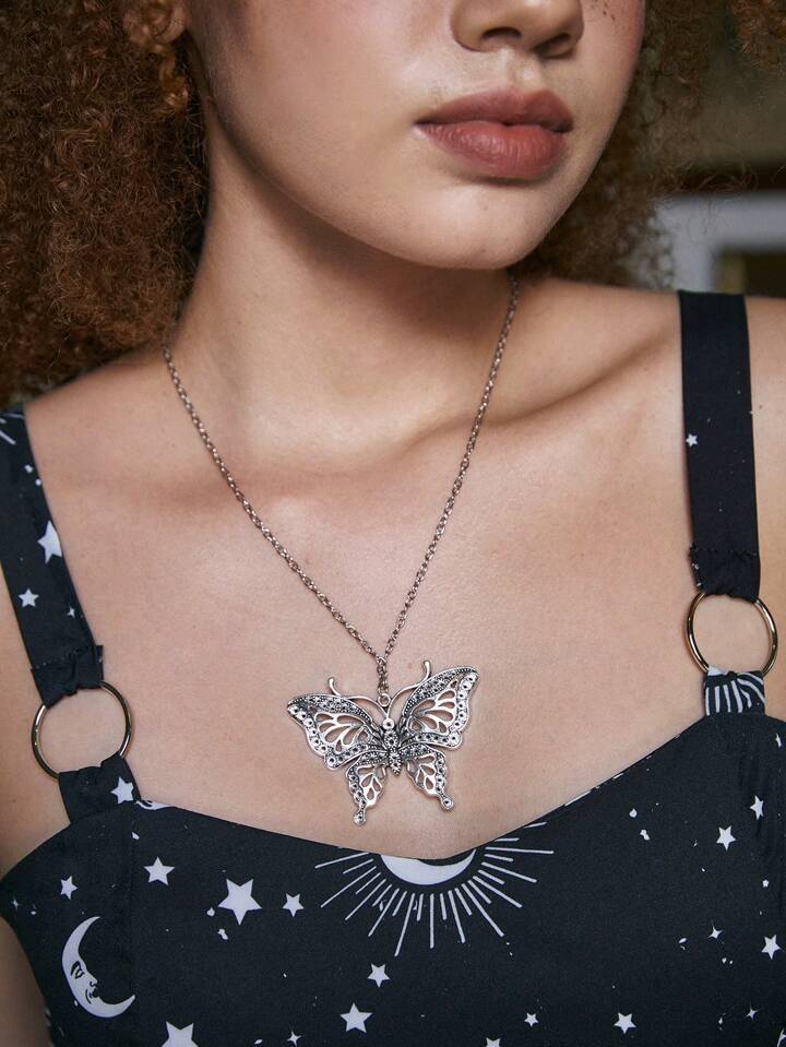 Academia 1pc Fashion Zinc Alloy Butterfly Charm Necklace For Women For Daily Decoration