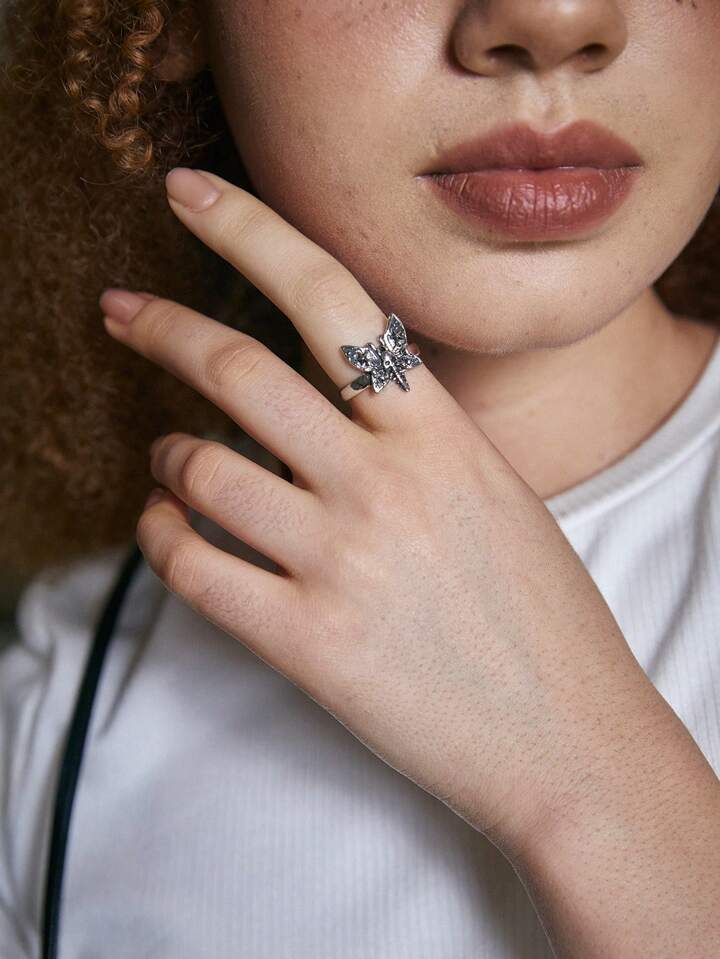 Academia 1pc Funky Zinc Alloy Butterfly & Skull Decor Cuff Ring For Women For Daily Decoration