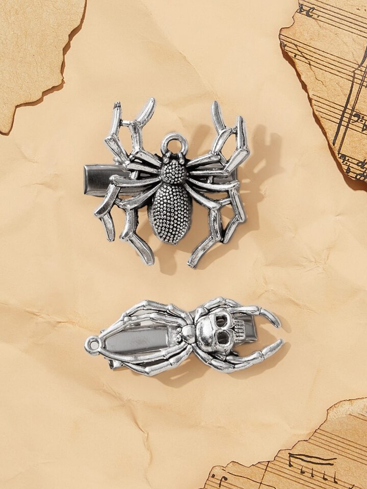 Academia 2pcs Spider & Skull Decor Alligator Hair Clip