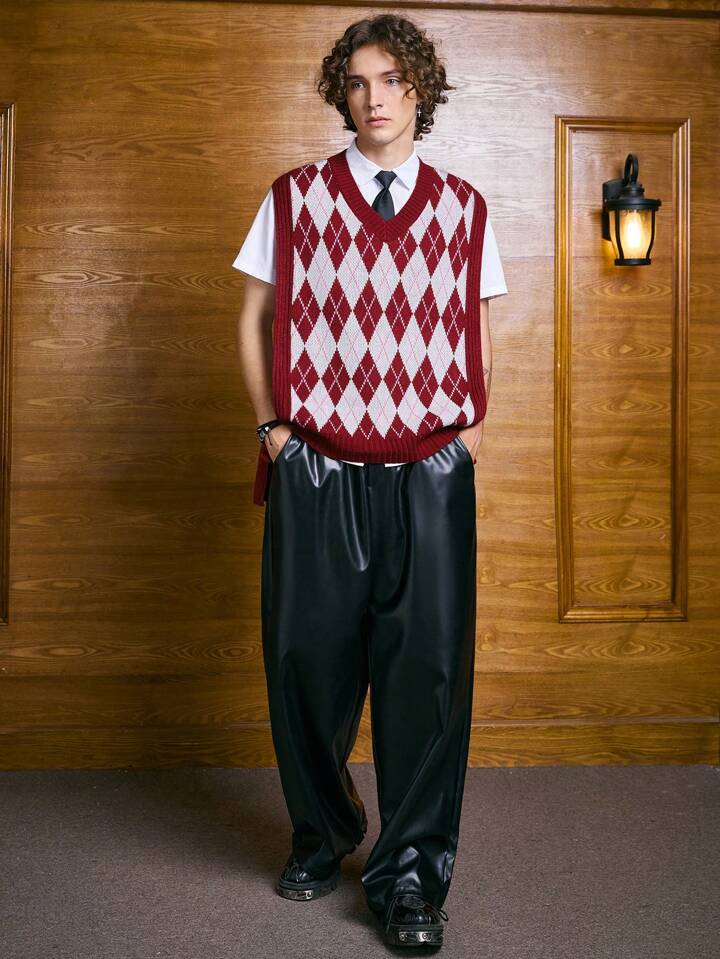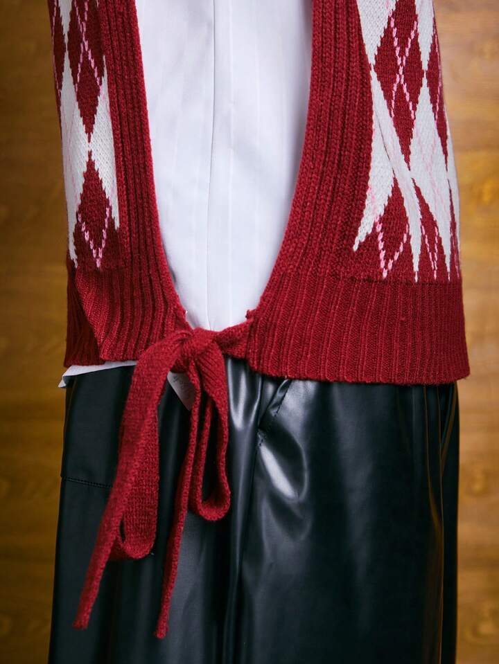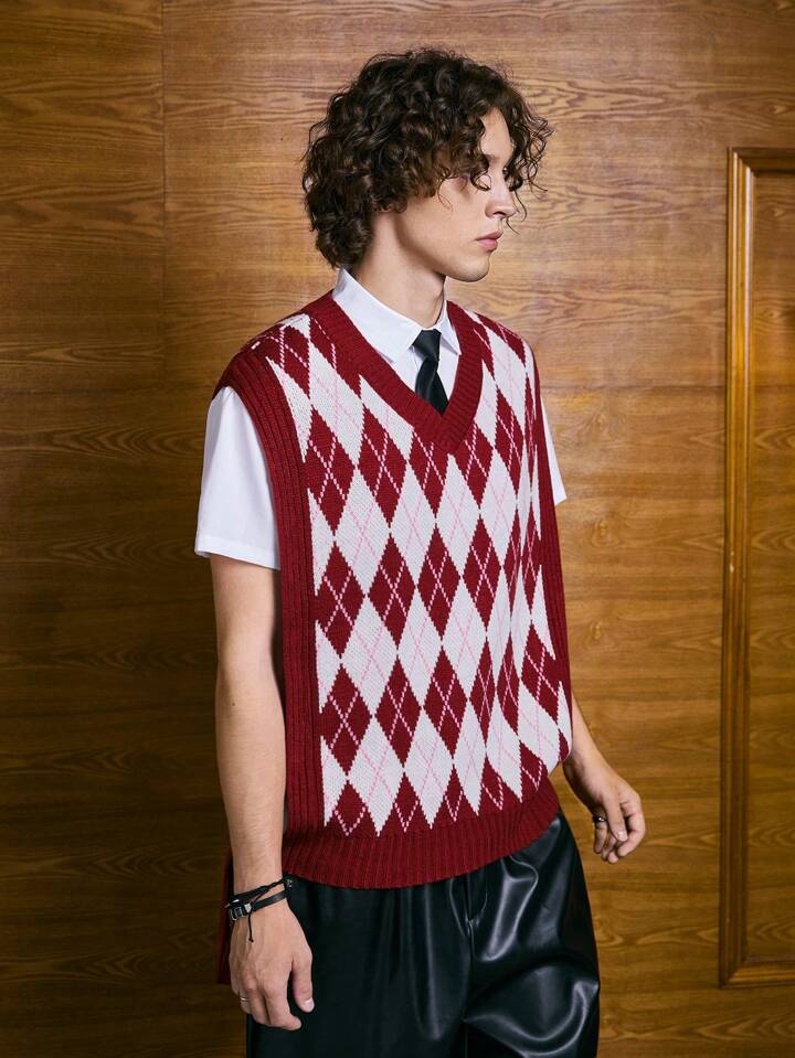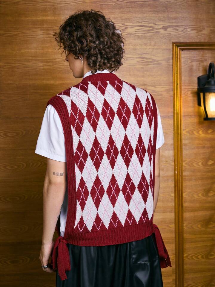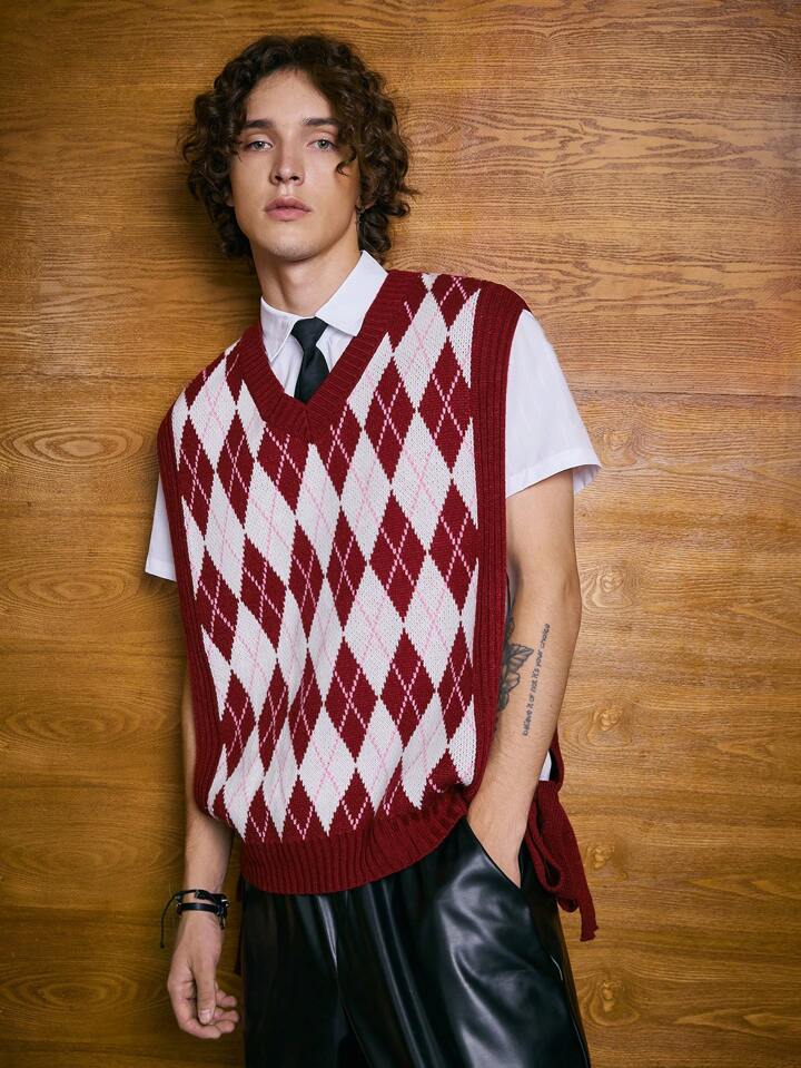 Academia Guys 1pc Argyle Pattern Tie Side Sweater Vest