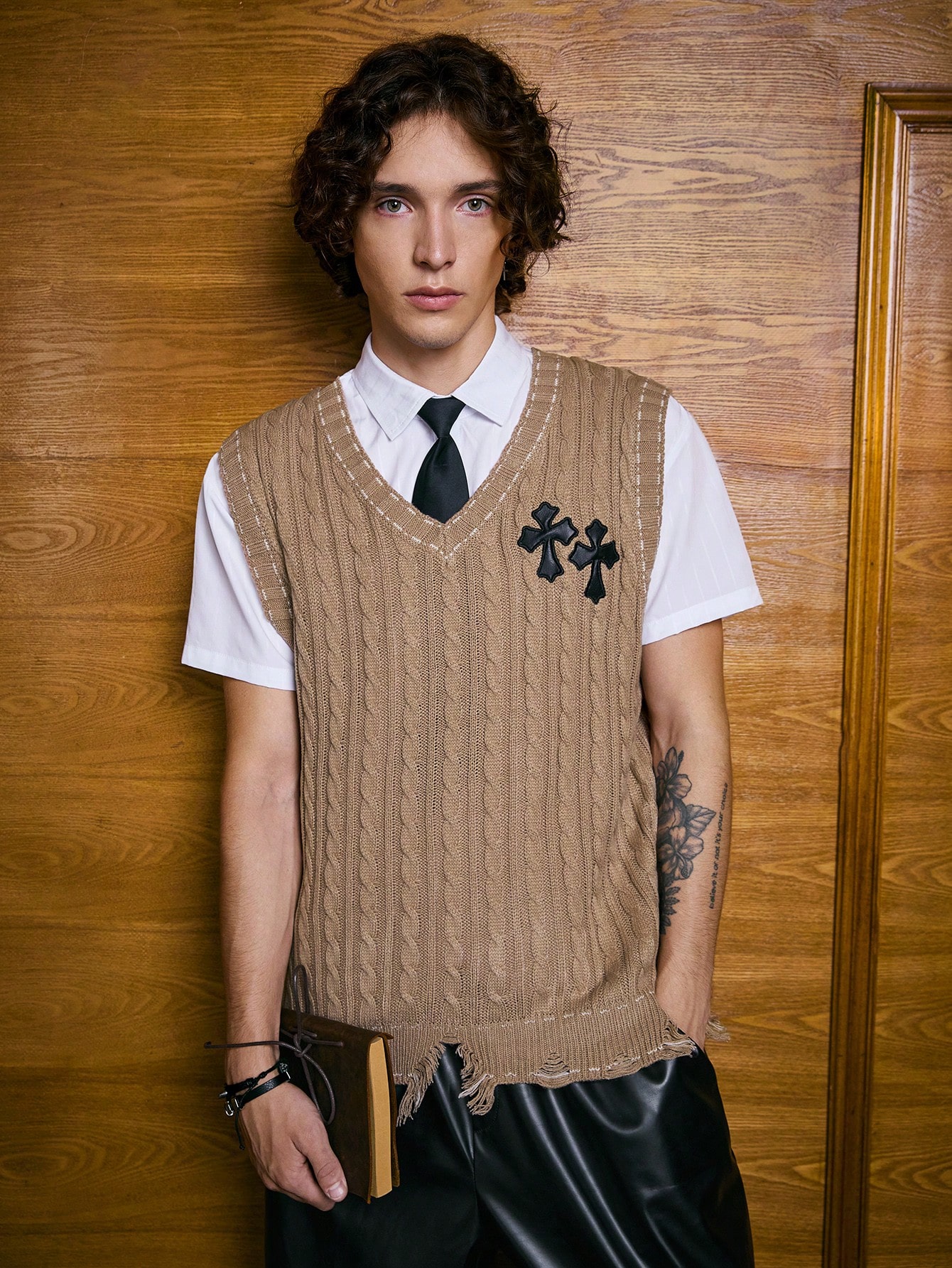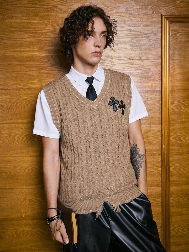 Academia Guys 1pc Cross Pattern Sweater Vest