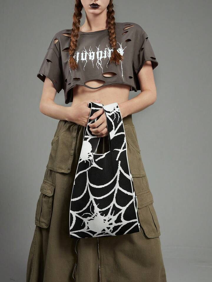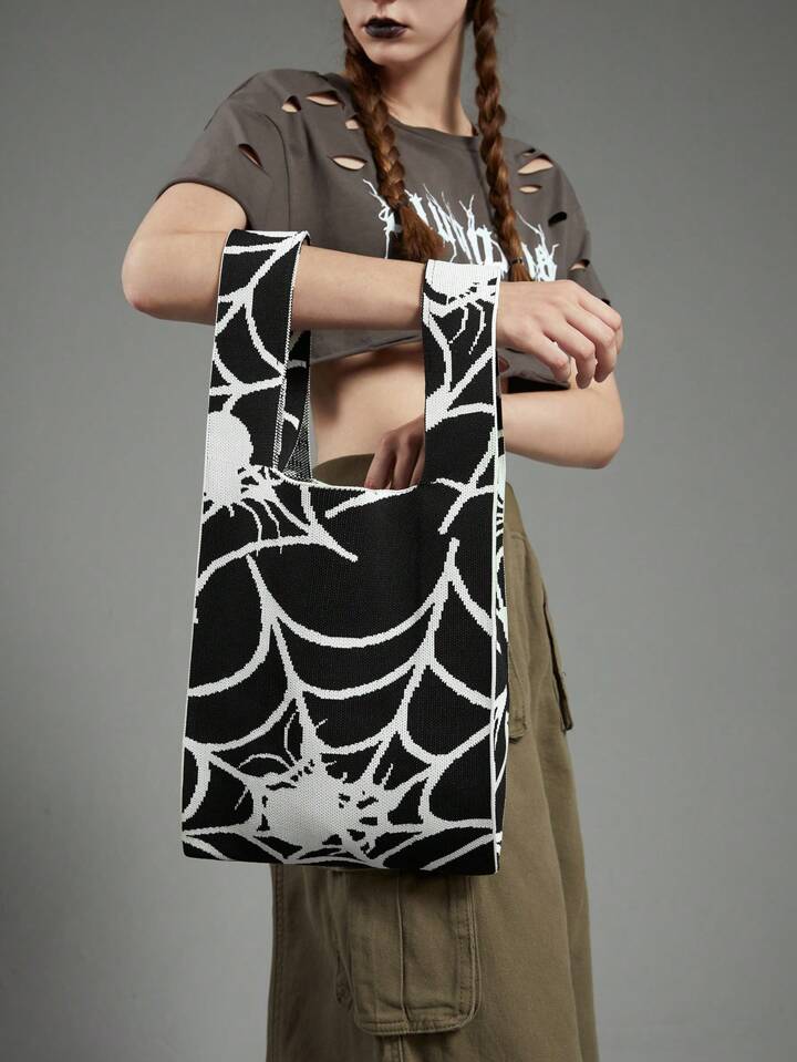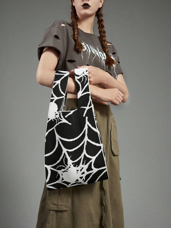 Academia Medium Crochet Bag Casual Spider Web Graphic For Shopping