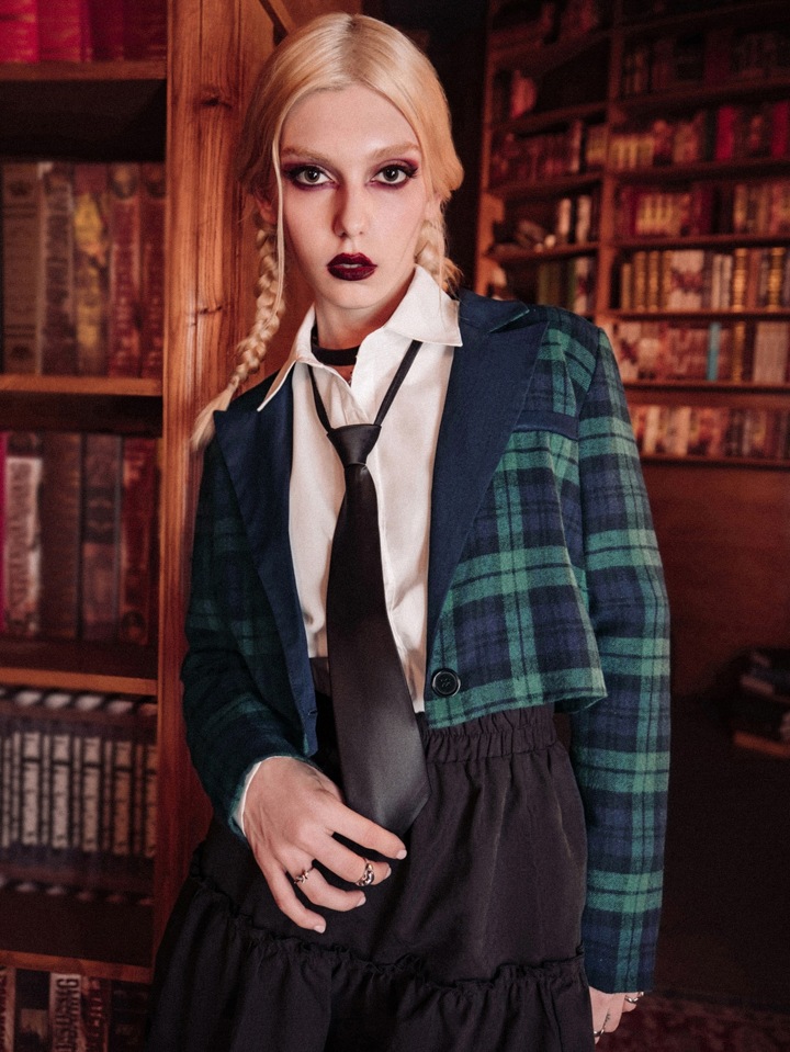 Academia Plaid Crop Blazer
