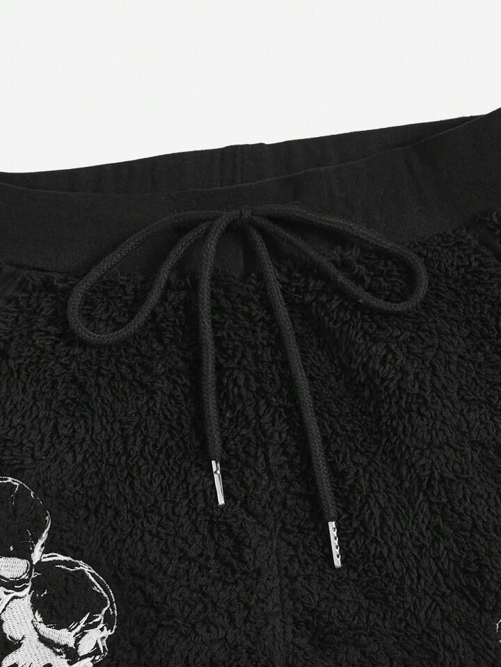 Academia Skull & Letter Graphic Drawstring Waist Teddy Shorts