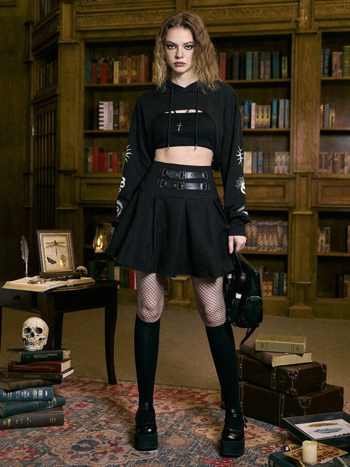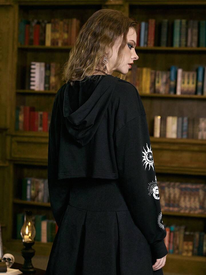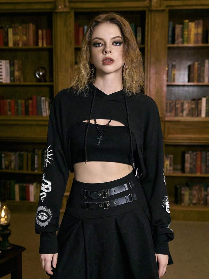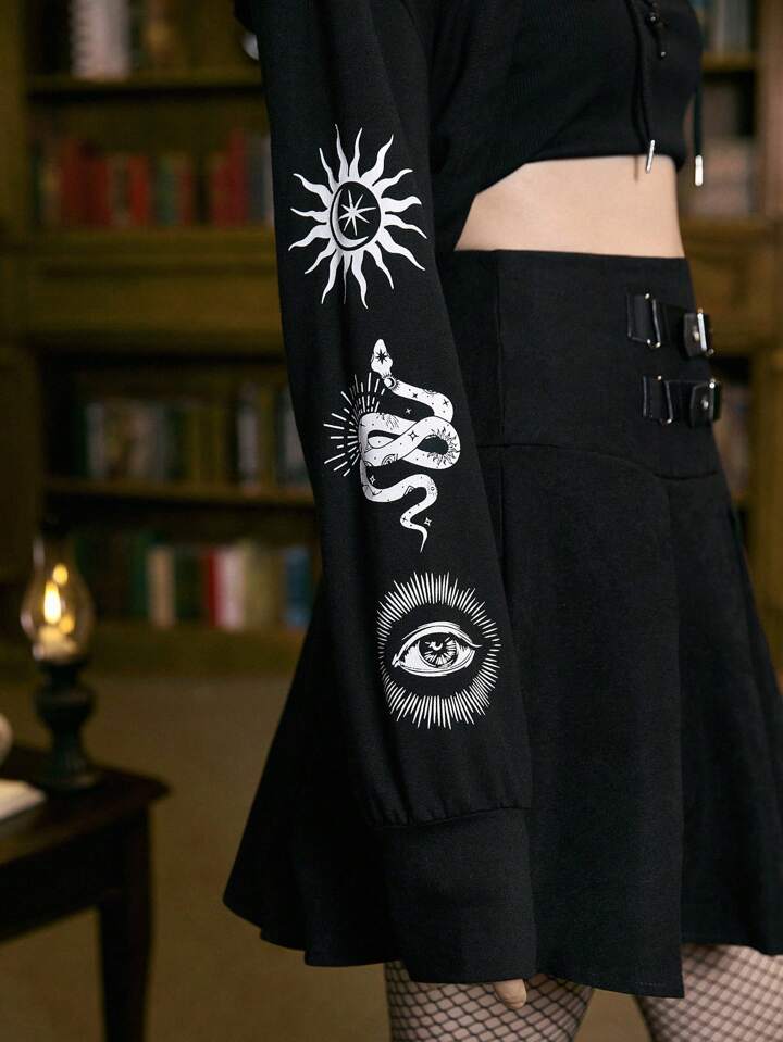 Academia Sun & Snake Print Super Crop Hoodie Without Cami Top